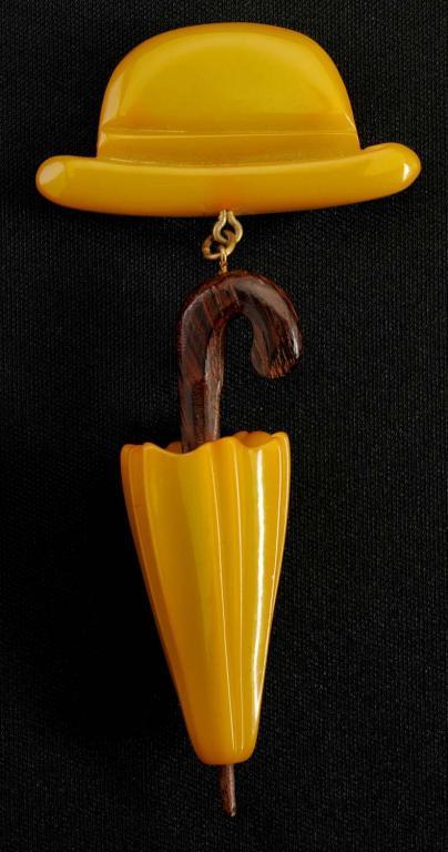 Description Rare. Umbrella made of Bakelite and wood. Condition (Excellent). Size 2" x 3 - 1/2".