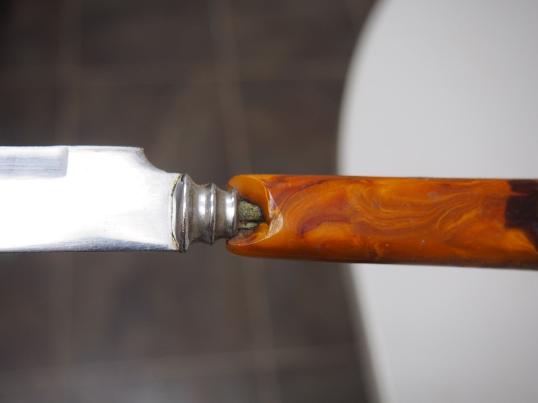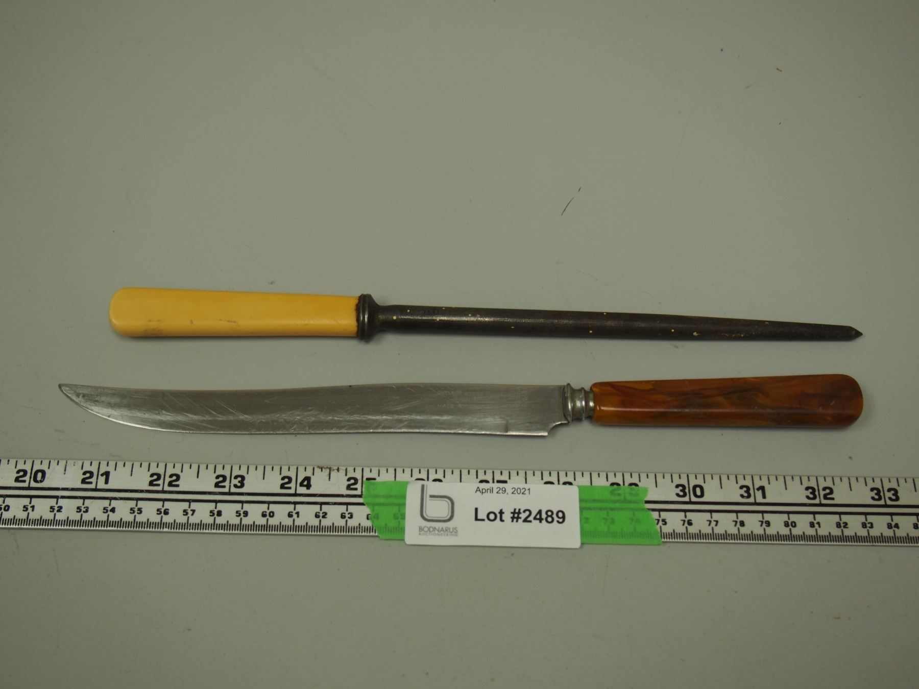 Bakelite Handle Knife Sharpener and Bakelite Handle John Palmer Knife (Handle has piece broken out)