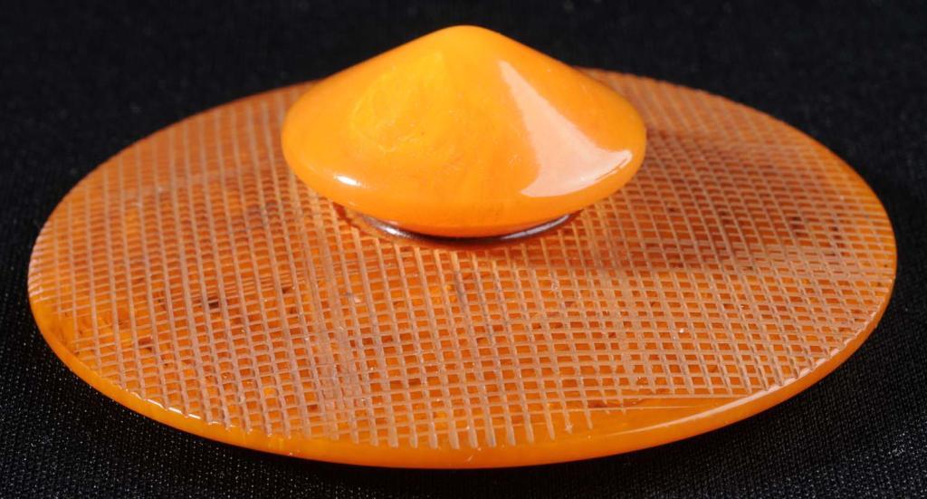 Description Two-tone basket weave pattern. Condition (Excellent). Size 3" Dia.