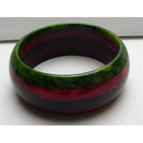 <tr><td>Title:Bakelite Laminated Green, Black, Rust Bangle</td></tr>