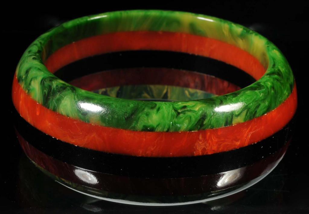 Description Includes five bands of color, two are green, one red, one black, and one orange. Condition (Excellent). Size 1 - 3/4" Dia.