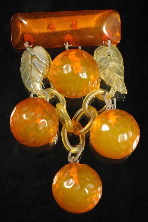 Description Depicts four oranges and leaves. Condition (Excellent). Size 2" x 2".