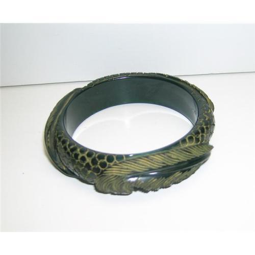 <tr><td>Title:Bakelite Vintage Carved Feather Design Bangle</td></tr>