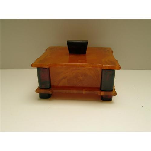 Another fabulous Vintage Bakelite Box in excellent condition with no cracks or chips. It measures 4" x 3 1/4" and it is 2" high. The pictues should say it all about this incredible Deco Box.