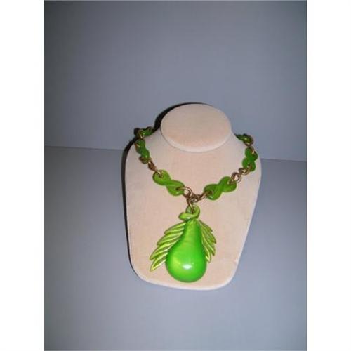 <tr><td>Title:Bakelite Vintage Green Pear Necklace</td></tr>