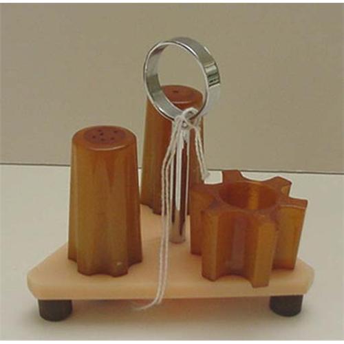 <tr><td>Title:Bakelite and Lucite Cruet Set</td></tr>