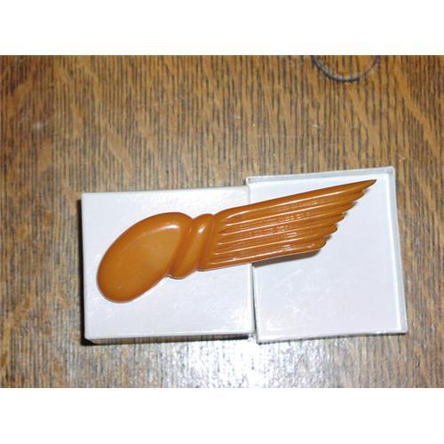 <tr><td>Title:Bakelite butterscotch carved pin </td></tr>