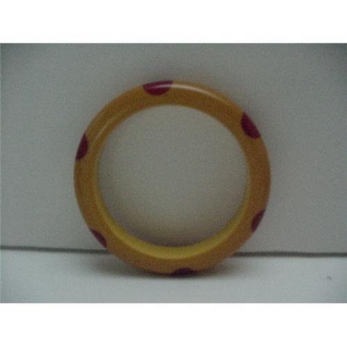 <tr><td>Title:Bakelite vintage 6 dot cream bracelet with orange dots</td></tr>