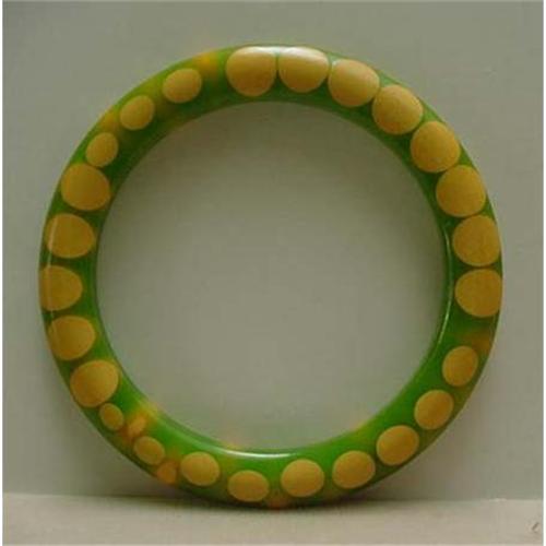<tr><td>Title:Bakelite vintage Green injected dot bracelet</td></tr>