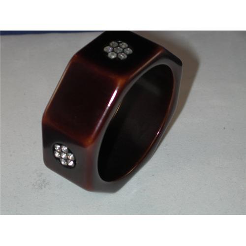 Bakelite 8 sided, 1 1/4 inch wide bangle bracelet in deep chocolate brown color and set with several clear rhinestones.