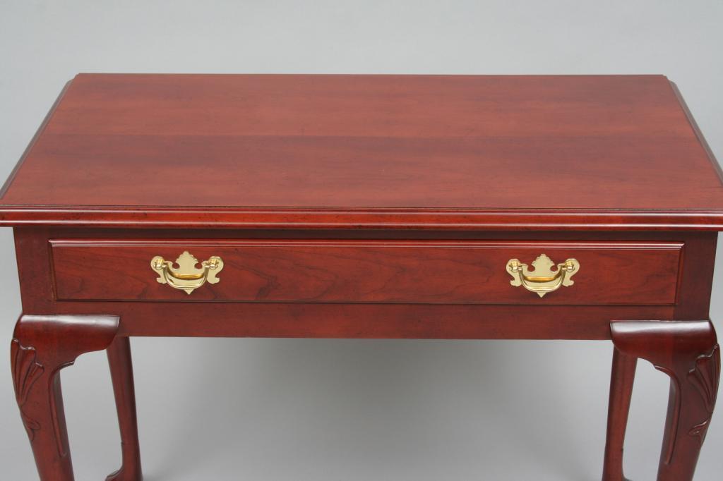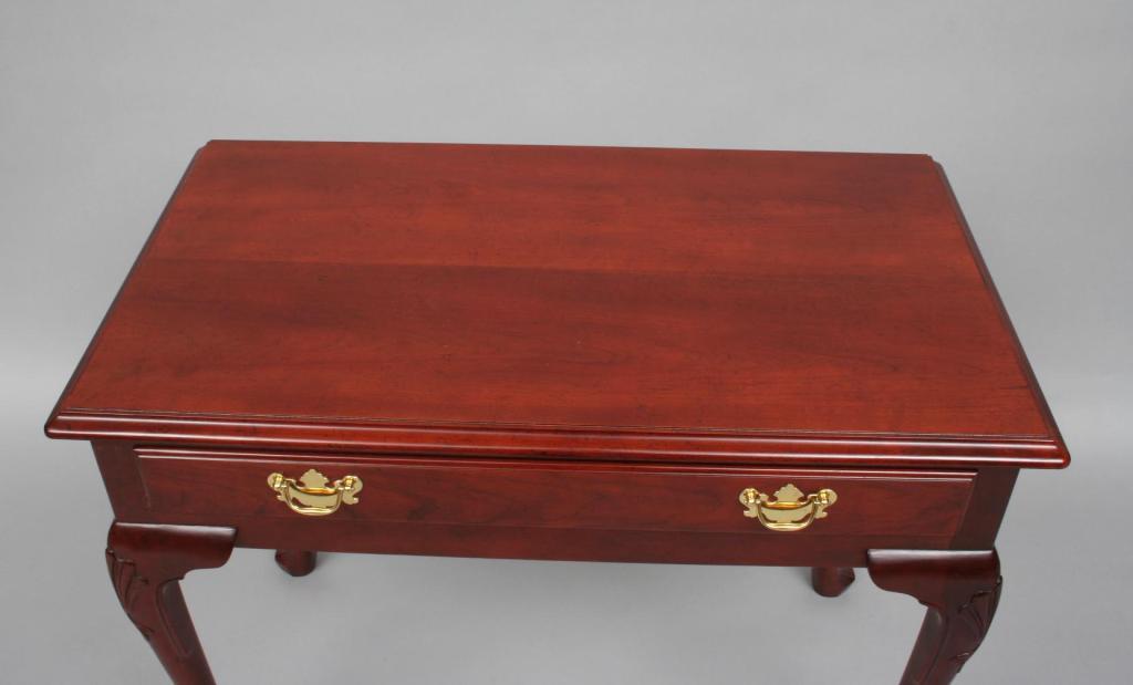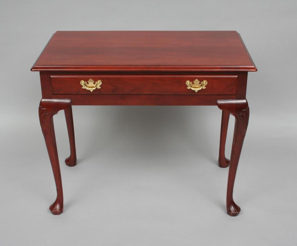 Baker Furniture Company, the rectangular top over a single drawer, raised on cabriole legs with shell carved knees, the interior of the drawer with Baker Historic Charleston label. 28 1/4"H. 34 1/4"W. 19 1/2"D. Condition: excellent, no damage or repair.