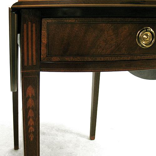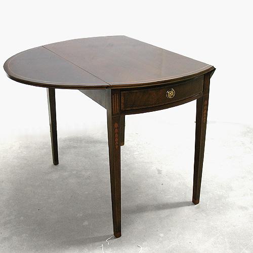Baker cherry and inlaid Pembroke table; mid 20th C.; 28" high x 19 1/2" across x 30" deep; leaves measure 9" (no visible defects)