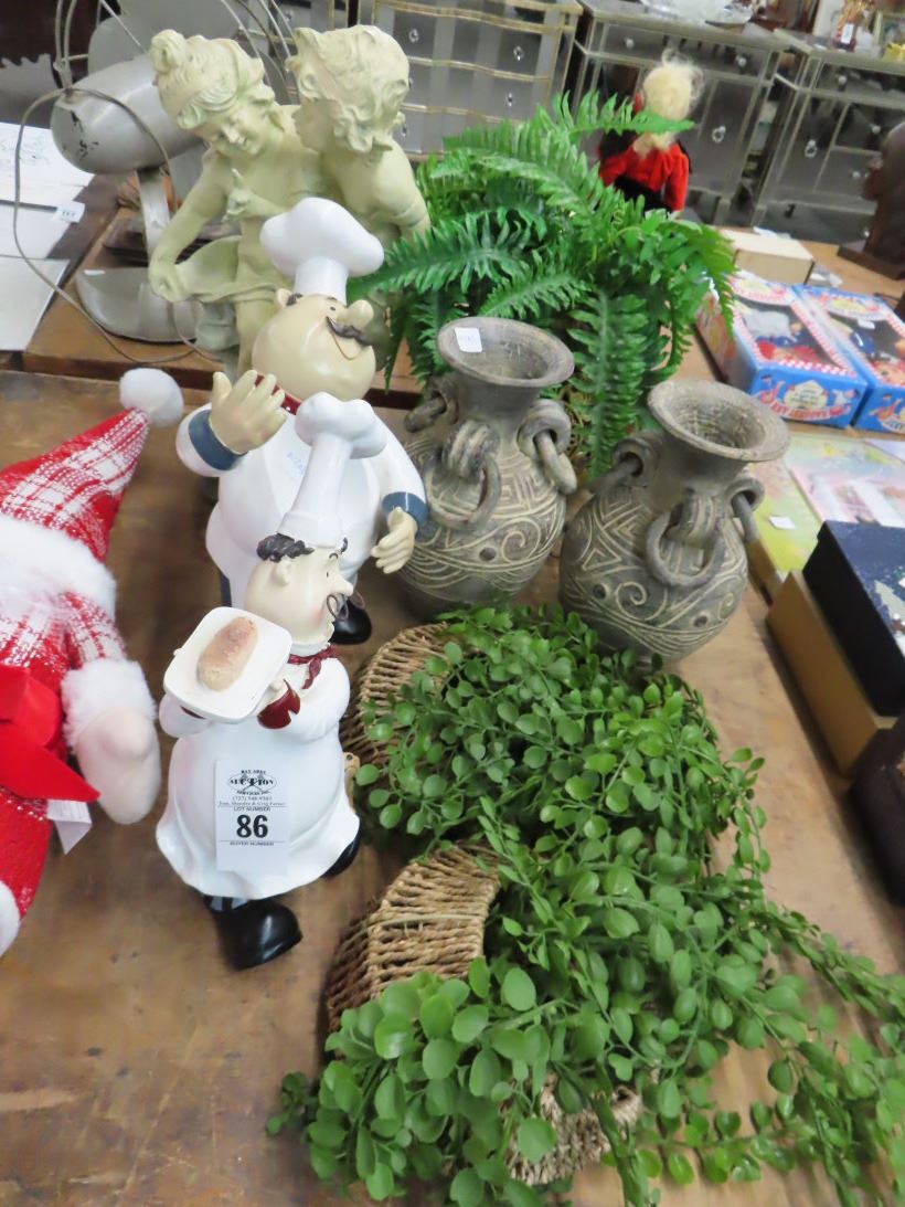 Bakerman Figurines, Cherubs, Vase, Silk Florals