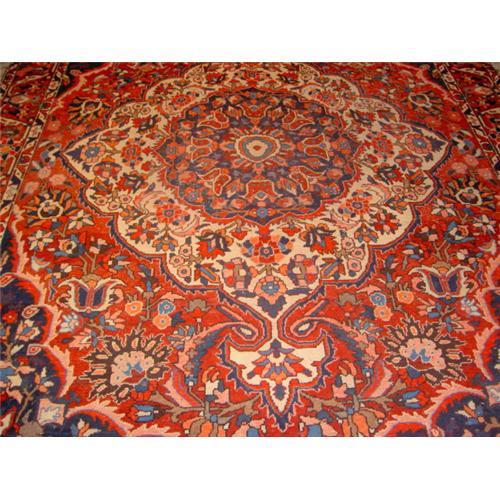 This is a semi antique persian rug. It has 100% wool pile on cotton base. It's an early 20th Century piece. The piece has great craftmanship, as well as being a timeless piece of art.
