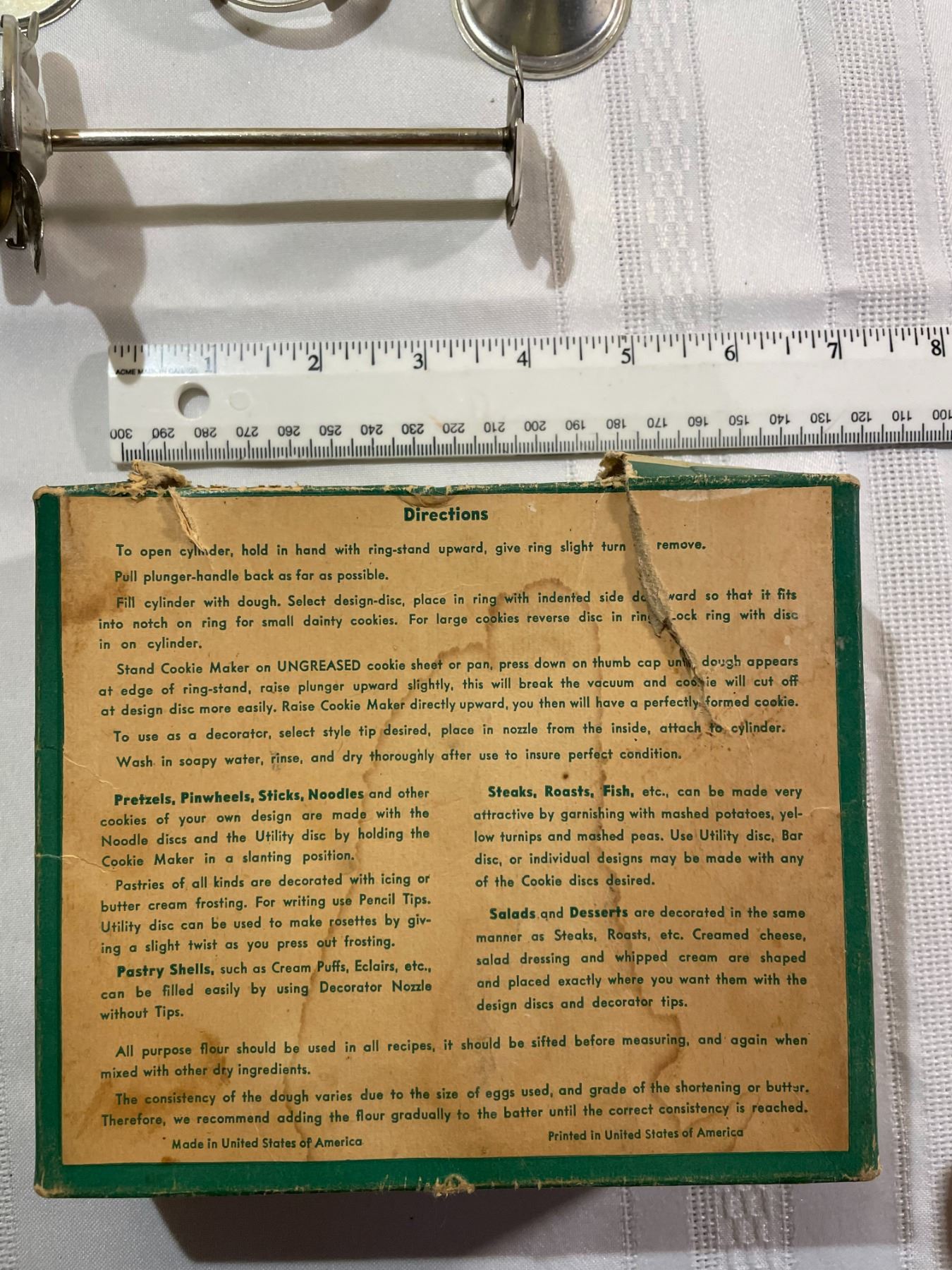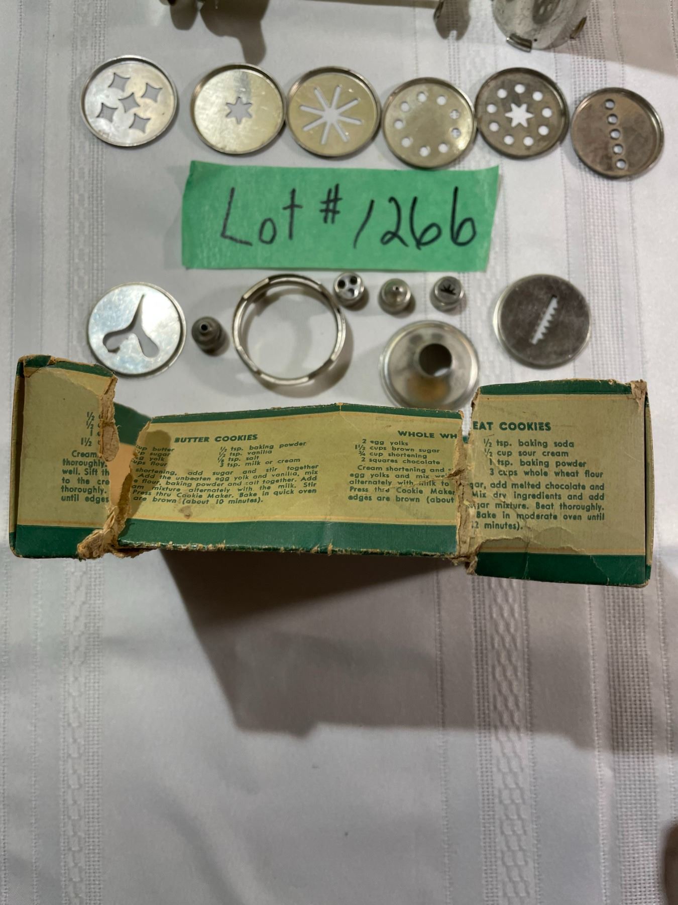 (1) Set of Cookie icing Decorating Kit 8 Decorator ends and 4 tips (partial box- no cover (not in great shape)