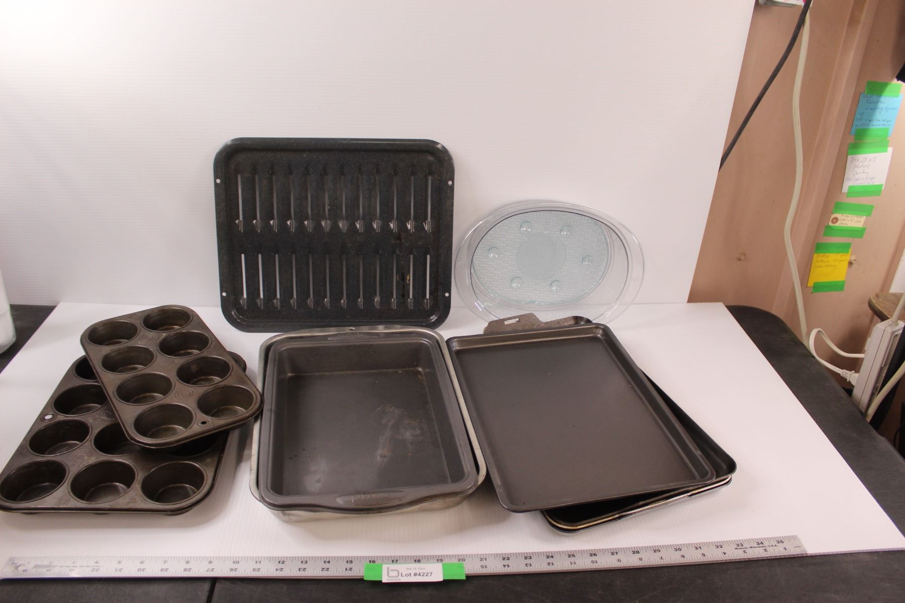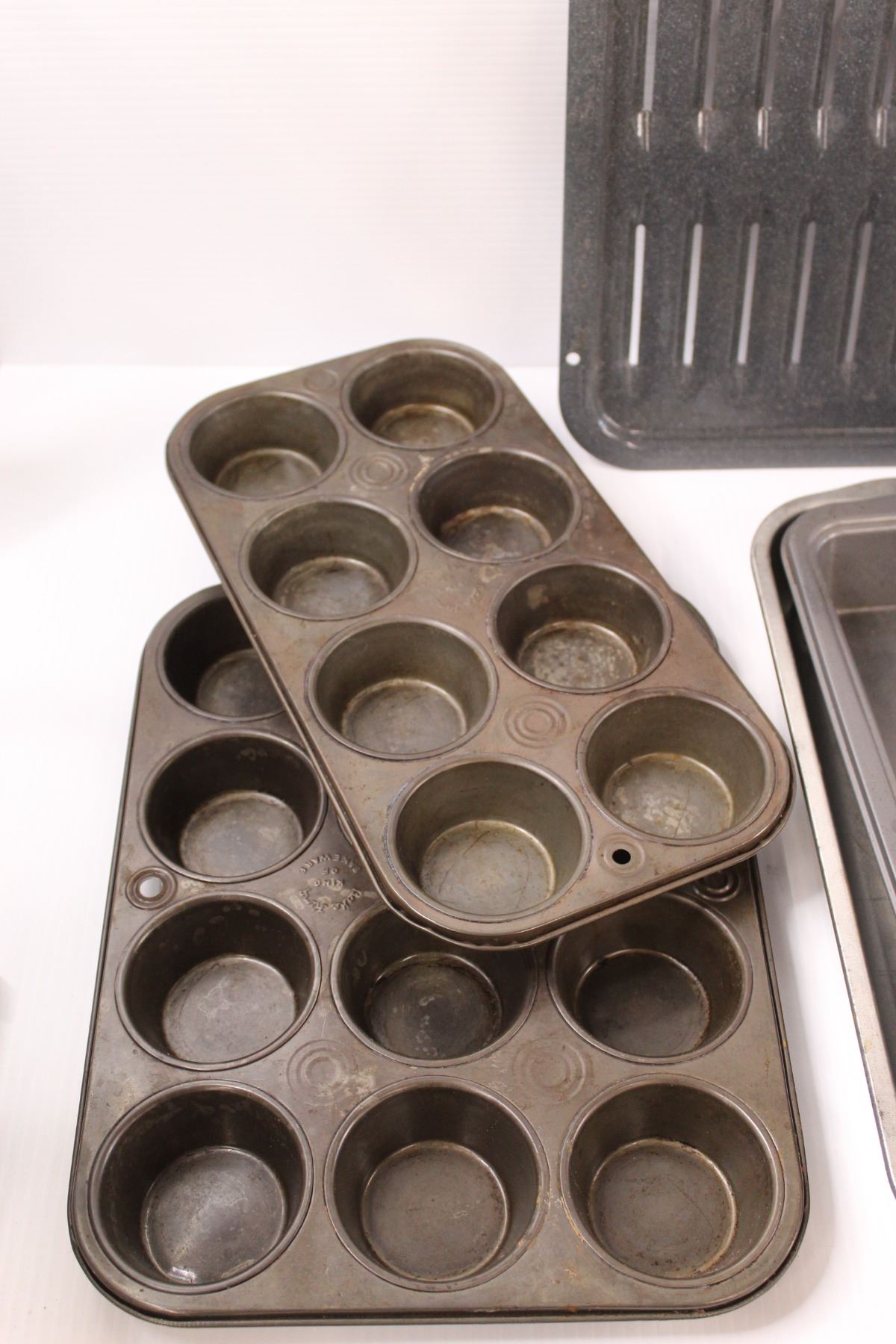 Baking Pans (Assorted Sizes) - (2) Cake, (4) Sheet Pans, (2) Muffin Pans, Broiler Pan Top & Plastic