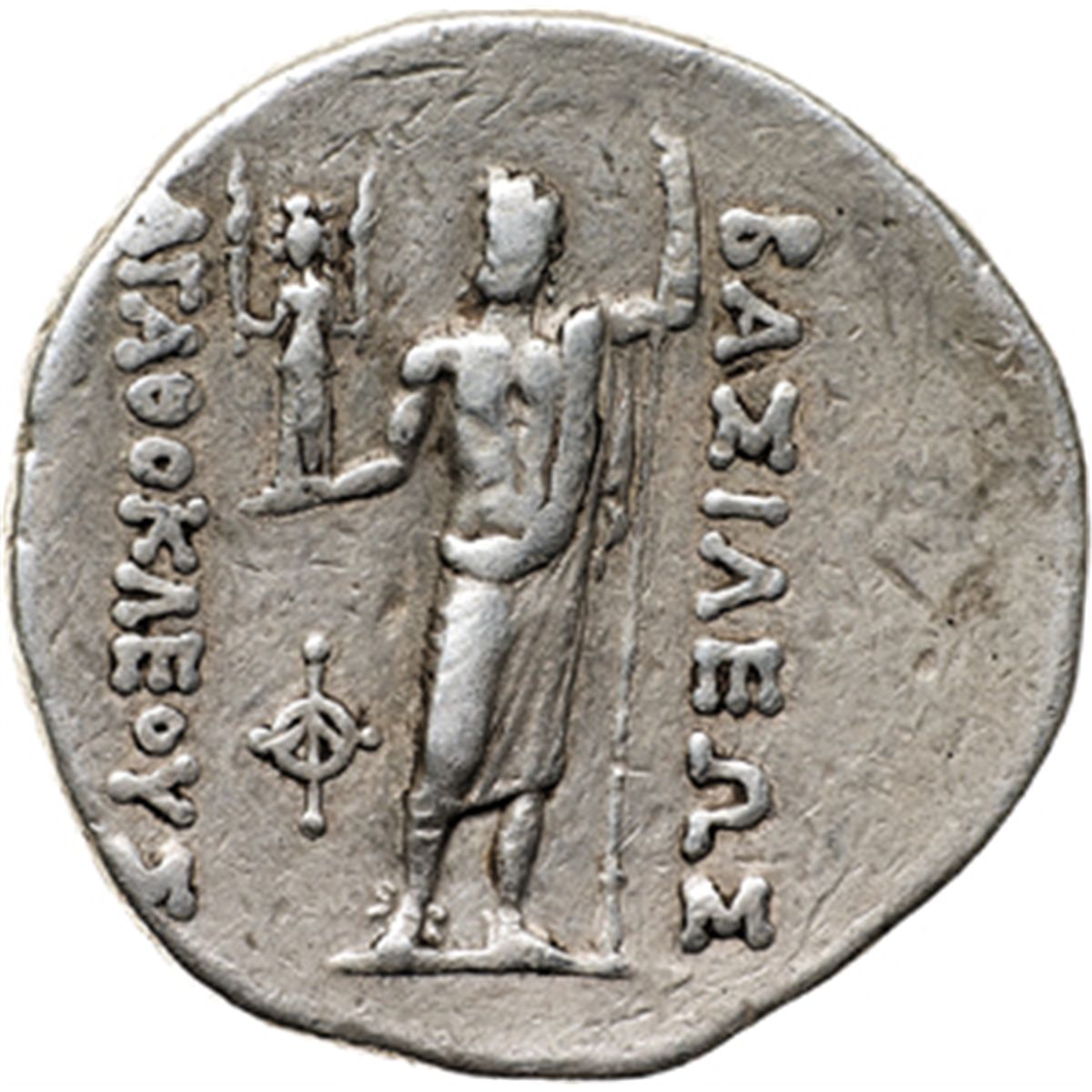 Mondo Greco. Asia Greca. Baktria. Agathokles (185-170 a.C.). Tetradracma. D/ Busto diademato e drappeggiato a destra. R/ ΒΑΣΙΛΕΩΣ ΑΓΘΟΚΛΕΟΥΣ. Zeus, stante di fronte, tiene statua di Hekate e scettro. Nel campo a sinistra, monogramma. SNG ANS 230. Bop. Ser. 1D. AG. g. 16.64 mm. 29.00 BB+/BB. Uno splendido ritratto ellenistico dagli alti rilievi. Provenienza: LEU 65 (maggio 1996), 261.