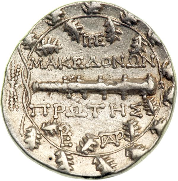 Baktria. Two silver drachms of Menander, along with a tetradrachm of Roman Macedonia. Grades Choice VF or better. Lot of 3 coins.