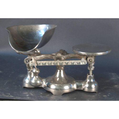 Balance scale with scoop silver in color