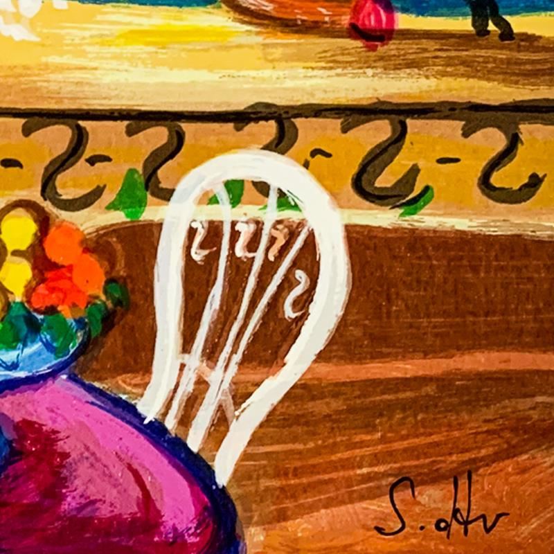 "Balcony Views" is a limited edition serigraph on paper by Shlomo Alter. It is numbered and hand signed and includes a letter of authenticity. Measures approximately 14" x 11.5" (image).