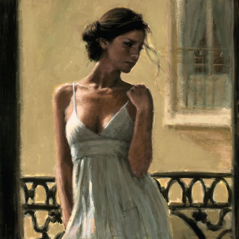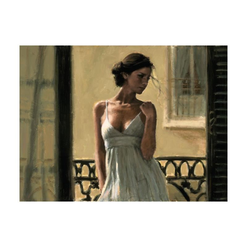 "Balcony at Buenos Aires XI" is a hand embellished limited edition giclee on stretched canvas by Fabian Perez. The piece is numbered and hand signed by the artist and comes with a Certificate of Authenticity. Measures approx. 32" x 40" (image). Please allow 5 additional business for items that include canvas stretch or framing.