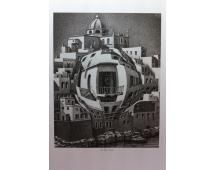 M. C. Escher Balcony, 1945 Lithograph "The spatial nature of these houses is a tiction. The two-dimensional nature of the paper on which they are drawn is not disturbed - unless we give it abulge from behind." M. C. Escher