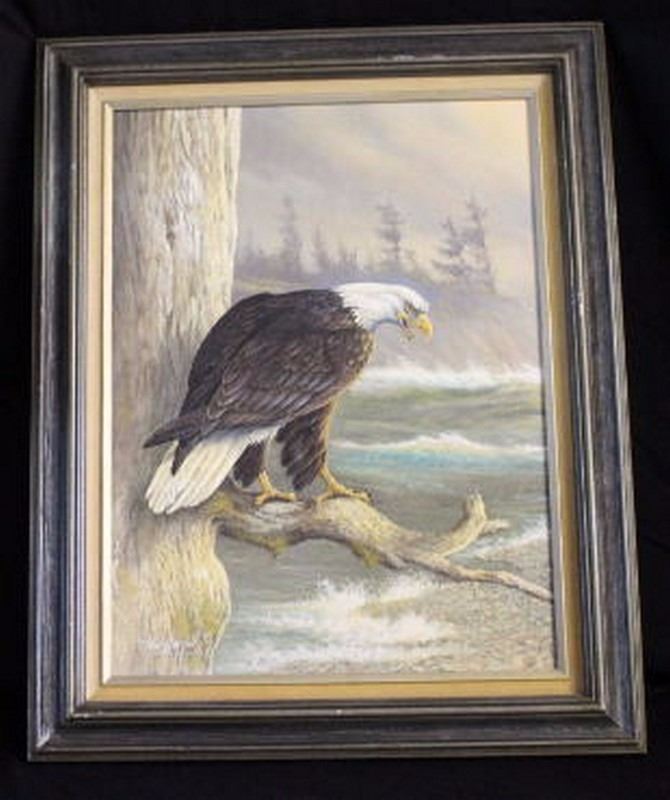 Antique Original Oil Painting by Keith Warring of Bald Eagle 30x25"