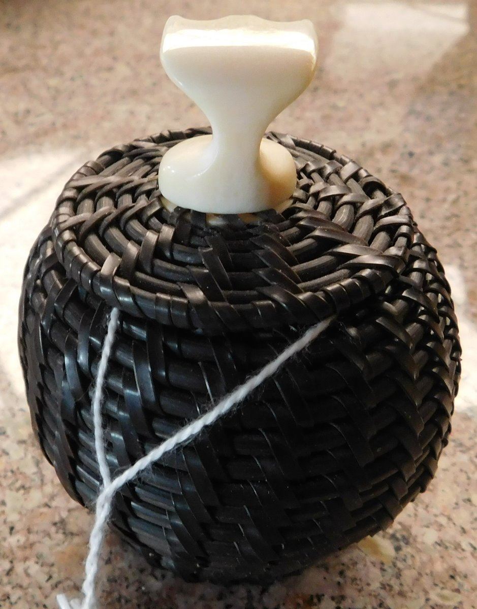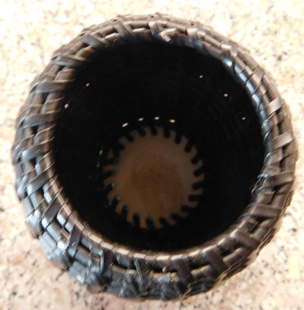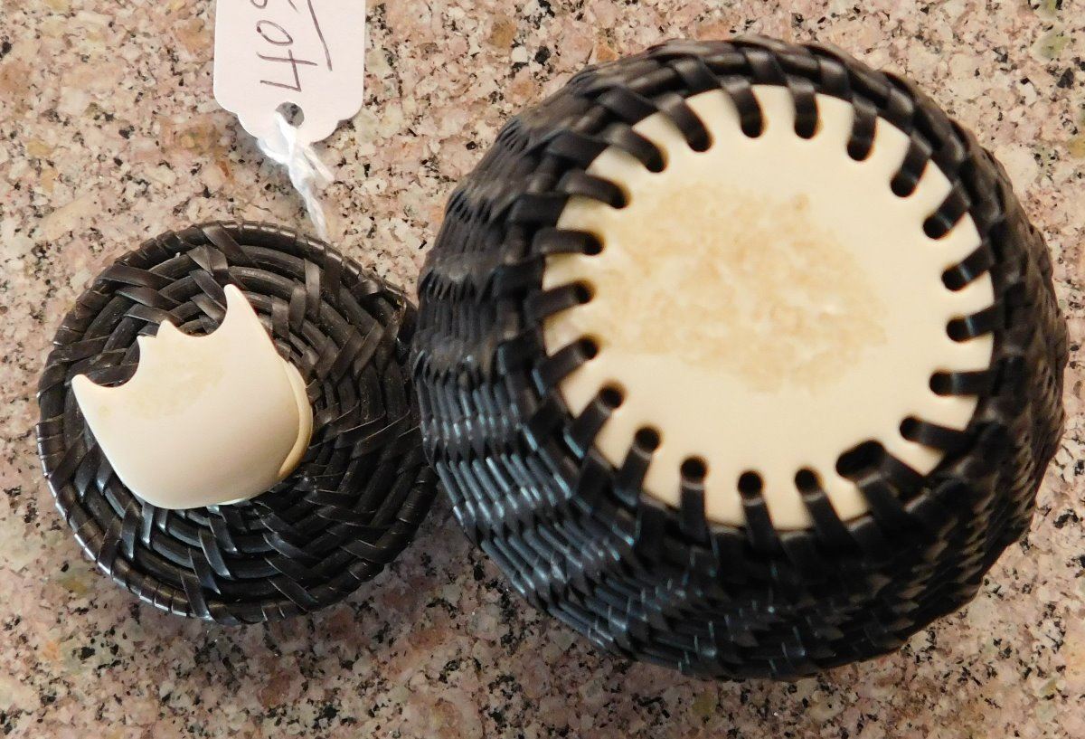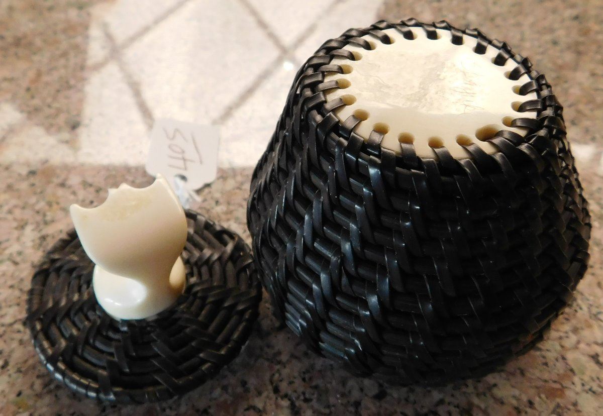 Baleen Eskimo Basket, circa 1960s. Made of baleen, the item measures 2.5" x 2.5" x 3.25". Eskimo, Alaska. Condition: Very good, see images. Shipping: $18.50 w/insurance and signature.