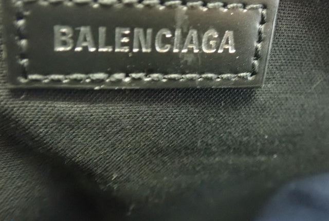One Balenciaga Black Canvas Navy Cabas Small Tote Bag. Item is sold AS-IS. All available information is listed in the description and shown in the photo. Black canvas and black Calfskin leather Balenciaga Navy Cabas small tote bag with the Balenciaga signature on the front, including ??Paris??. It comes with an internal pouch, silver-tone hardware and there is a large compartment to store everything you need. The bag opens and closes with press studs, carry it with two handles. Length 29cm Width 17.5cm Height 23.5cm, Handles Drop: 14cm