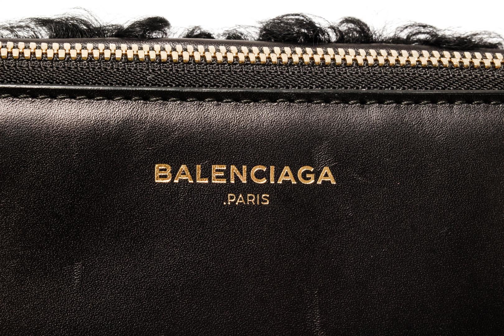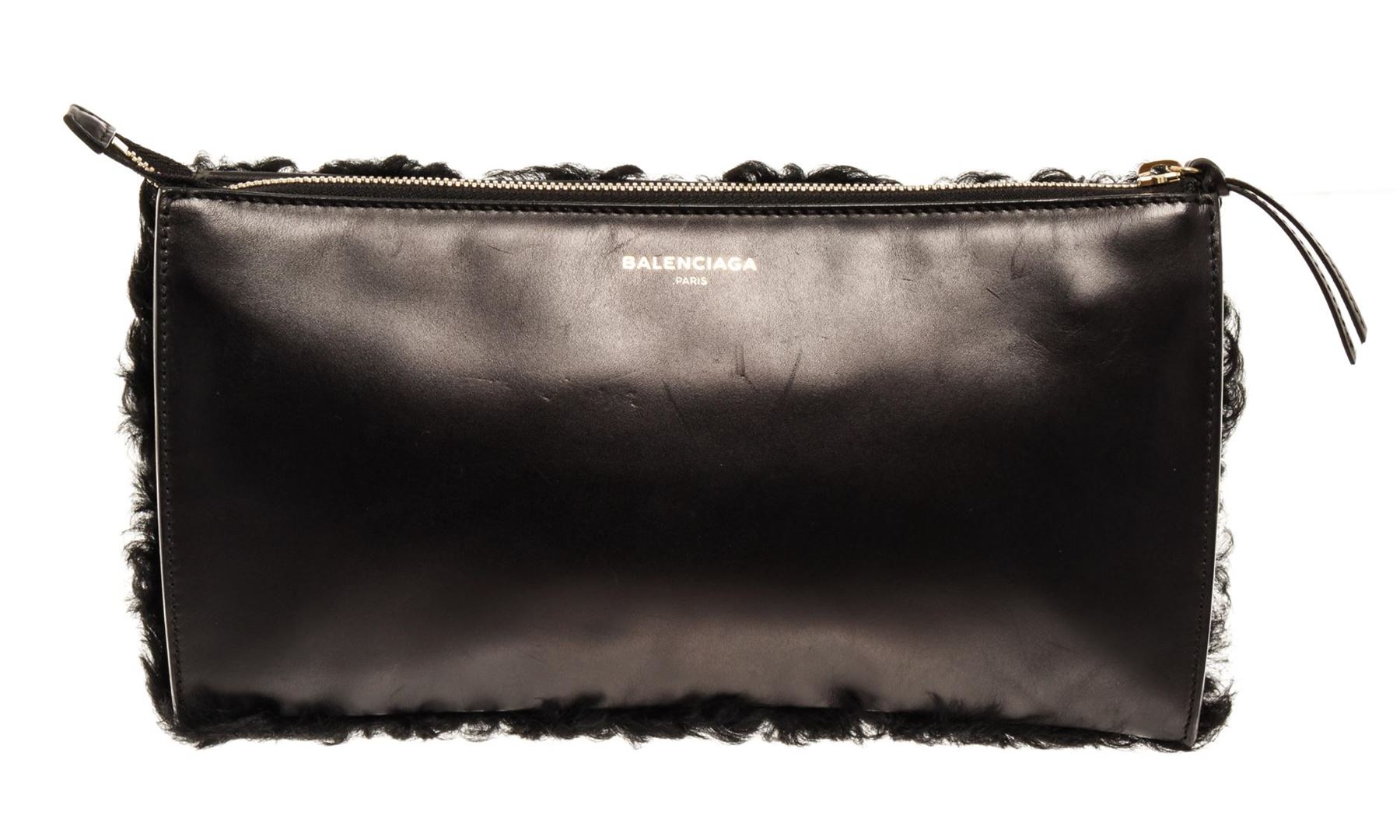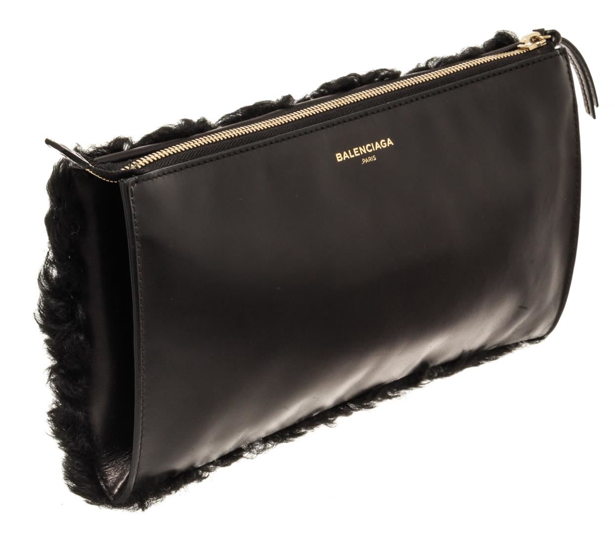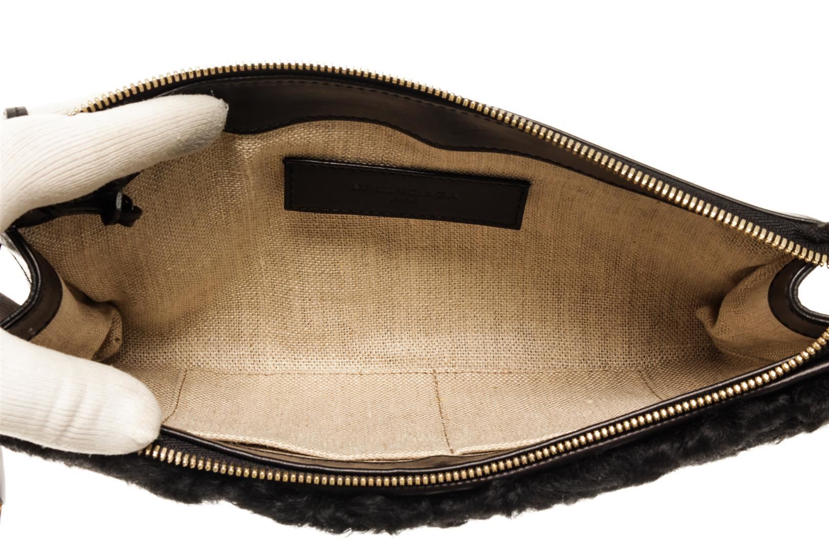 One Balenciaga Black Cloud Clutch. Item is sold AS-IS. All available information is listed in the description and shown in the photo. Balenciaga Black Cloud Clutch with gold hardware, canvas lining, two slip interior pockets, zipper closure.