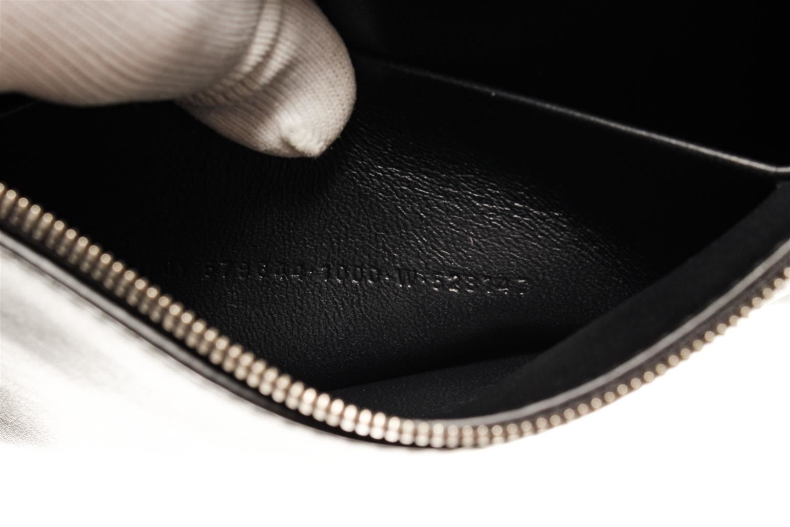 One Balenciaga Black Leather Everyday Script Logo Medium Pouch. Item is sold AS-IS. All available information is listed in the description and shown in the photo. Balenciaga Black Leather Everyday Script Logo Medium Pouch with silver-tone hardware, black leather lining, a leather slip pocket, and zip closure at the top. .