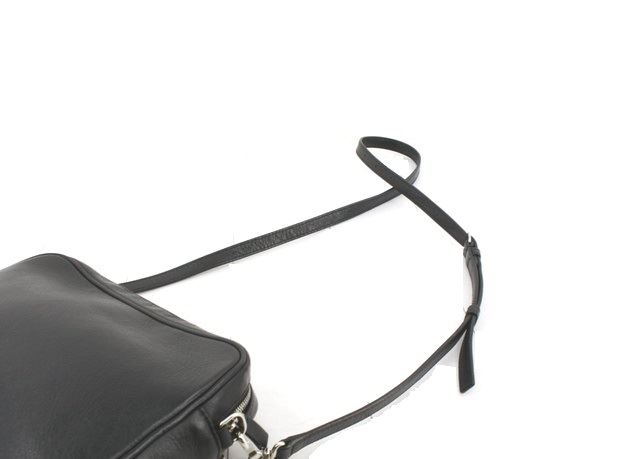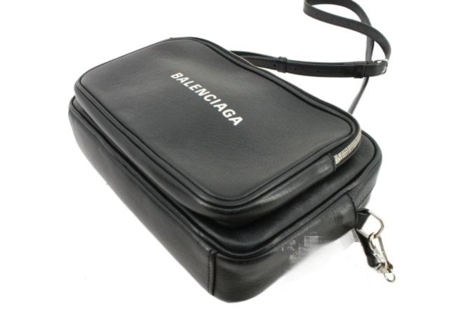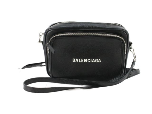One Balenciaga Black Leather Logo-Print Messenger Shoulder Bag. Item is sold AS-IS. All available information is listed in the description and shown in the photo. Black Leather