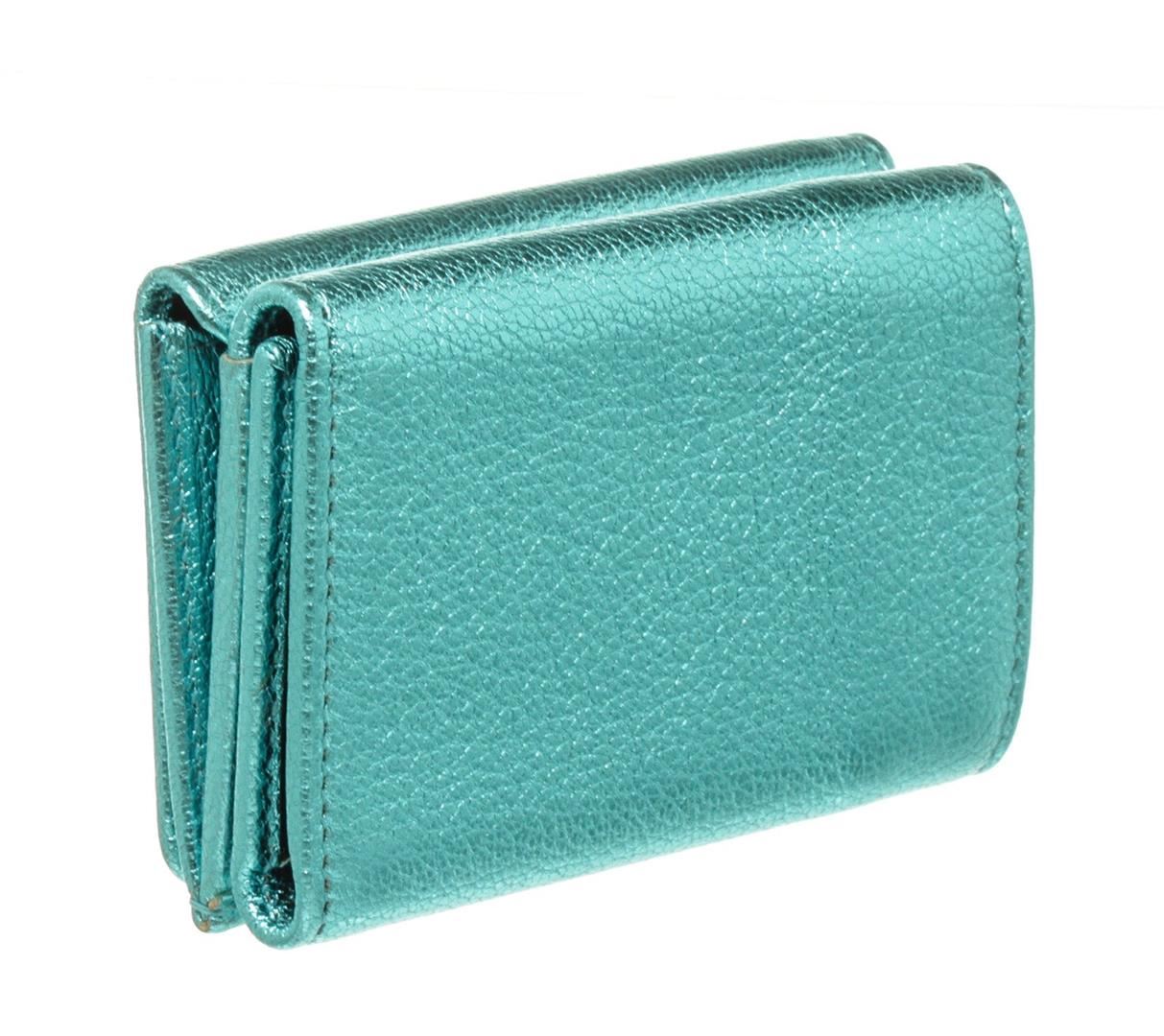 One Balenciaga Blue Leather Logo Trifold Wallet. Item is sold AS-IS. All available information is listed in the description and shown in the photo. Balenciaga Blue Leather Logo Trifold Wallet with leather, gold-tone hardware, interior card holder pocket and snap closure.