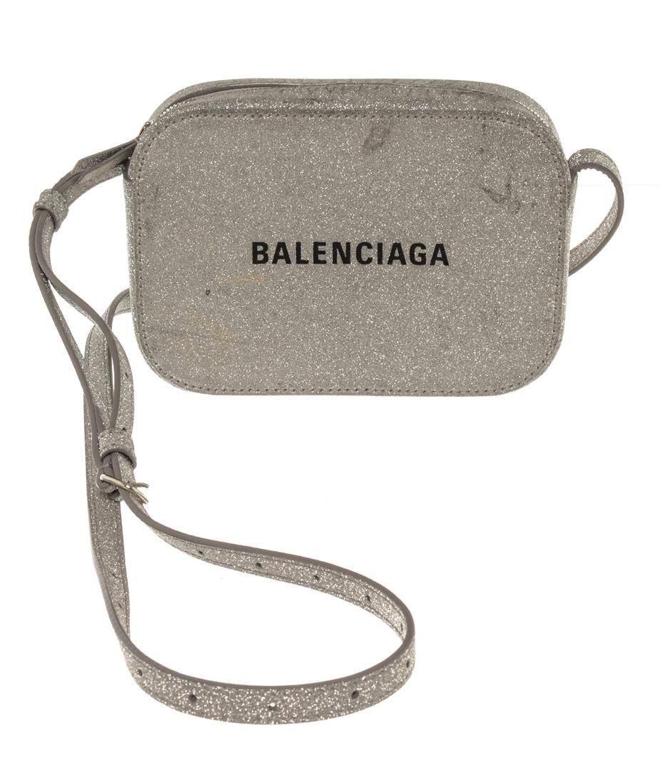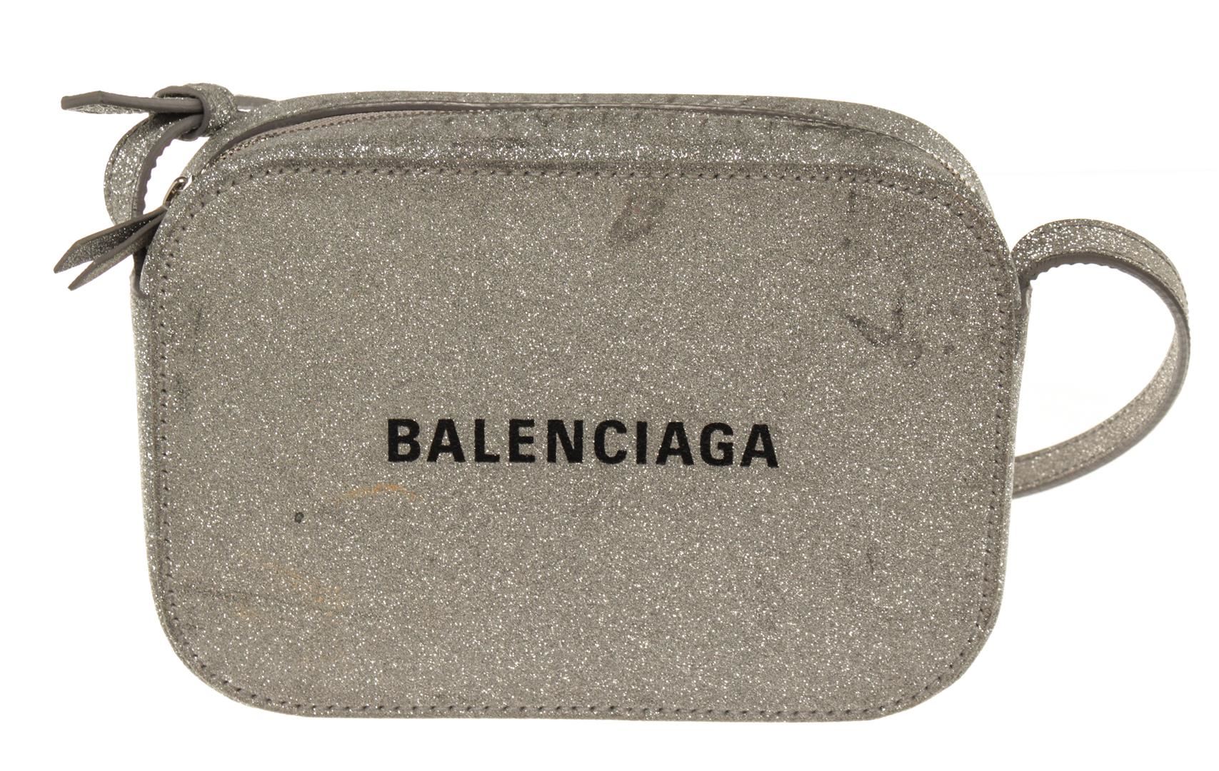 One Balenciaga Everyday Camera Bag. Item is sold AS-IS. All available information is listed in the description and shown in the photo. Balenciaga Everyday Camera Bag Black Grey. Features silver hardware, grey leather strap, black logo on front pocket, and a silver zipper closure.