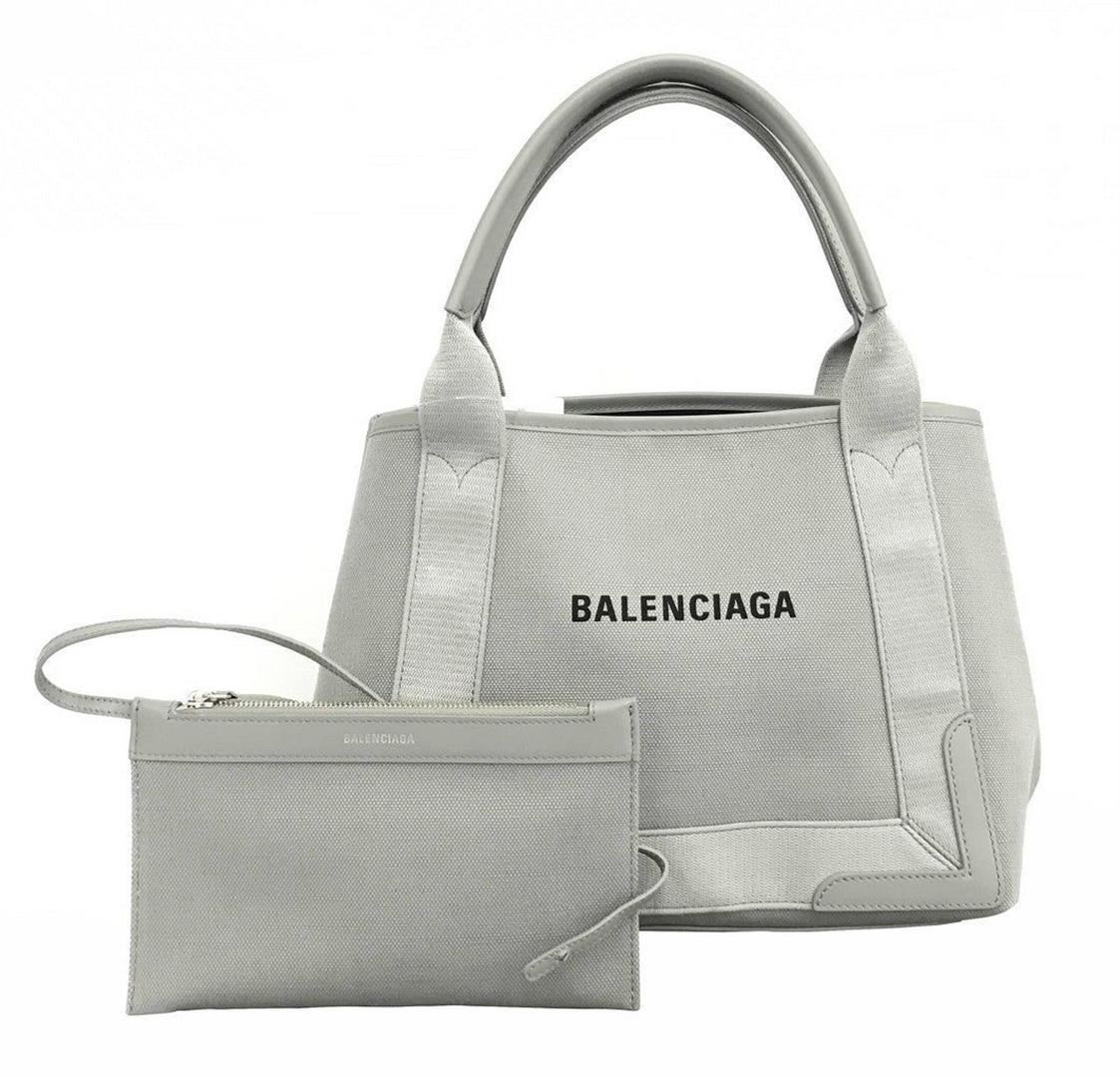 Balenciaga Gray Leather Cabas Tote Bag with leather, silver-tone hardware, trim leather and interior slip pocket, dual top handle and flap closure. 18,5" x 9,4" x 7,4"/47cm x 23.9cm x 18.8cm