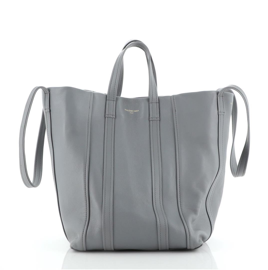 One Balenciaga Laundry Cabas Tote Leather Small Gray. Item is sold AS-IS. All available information is listed in the description and shown in the photo. Balenciaga Laundry Cabas Tote Leather Small Black Condition Details: Creasing on exterior, wear on base corners. Scuffs in interior, scratches on hardware. Height 13", Width 10.5", Depth 10", Strap Drop 10