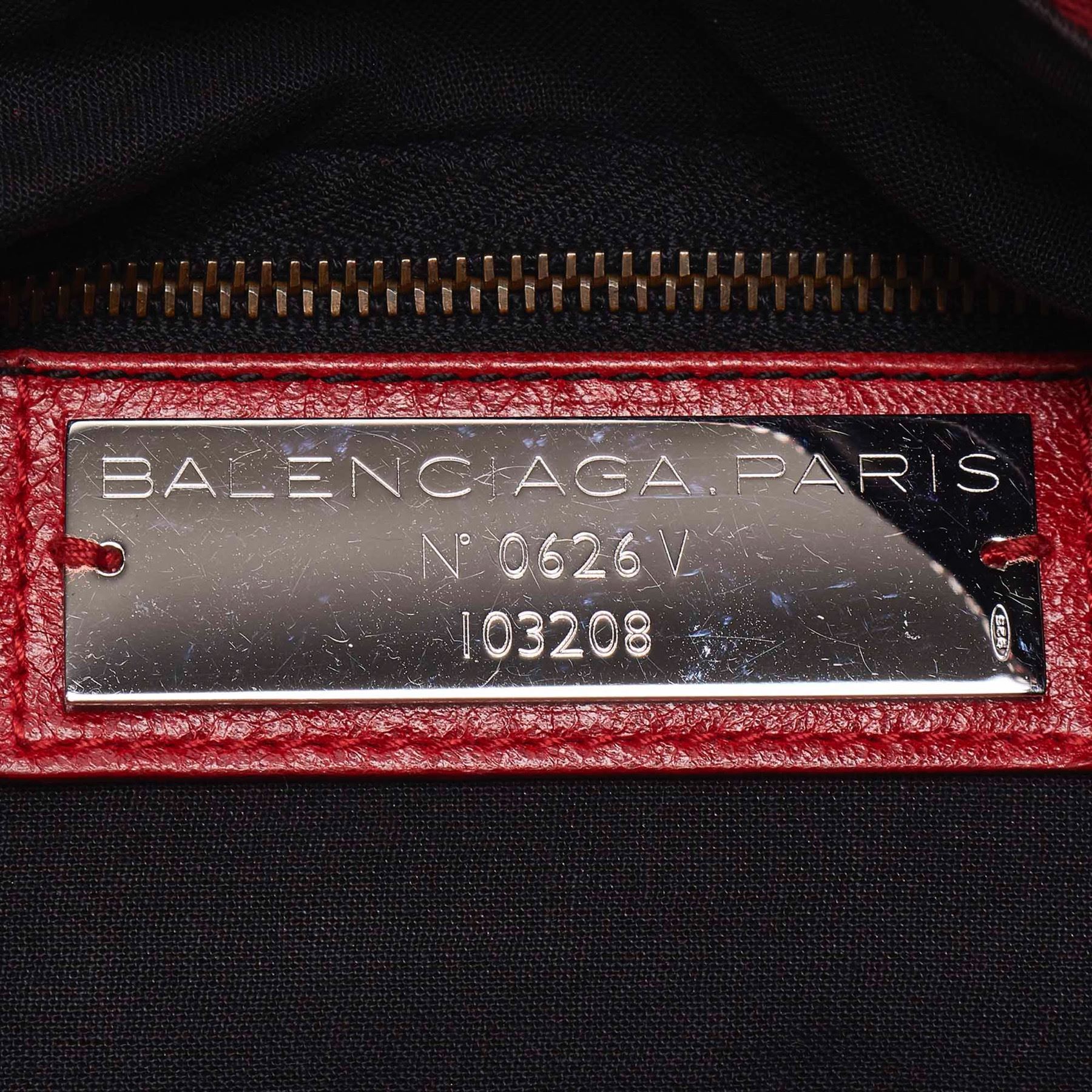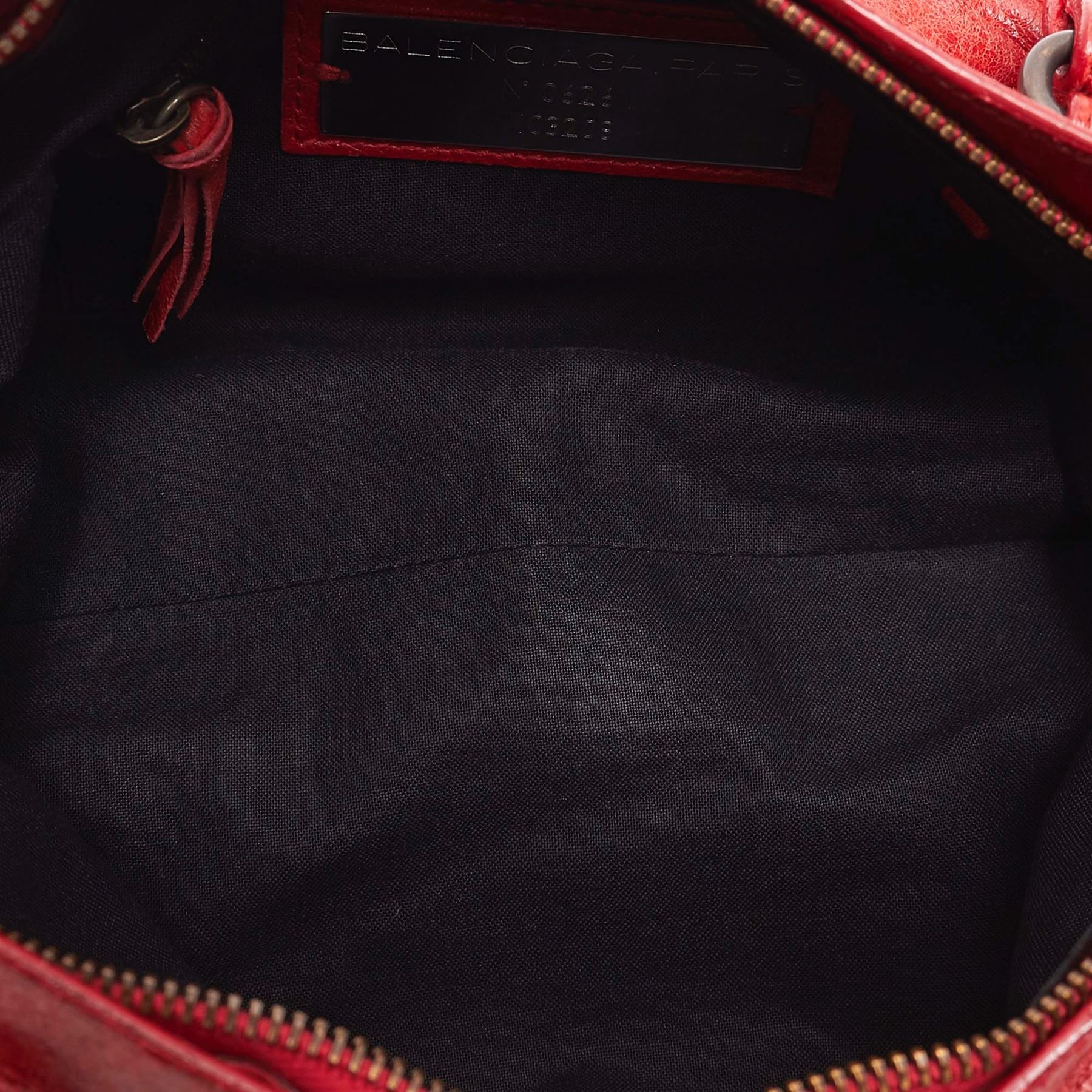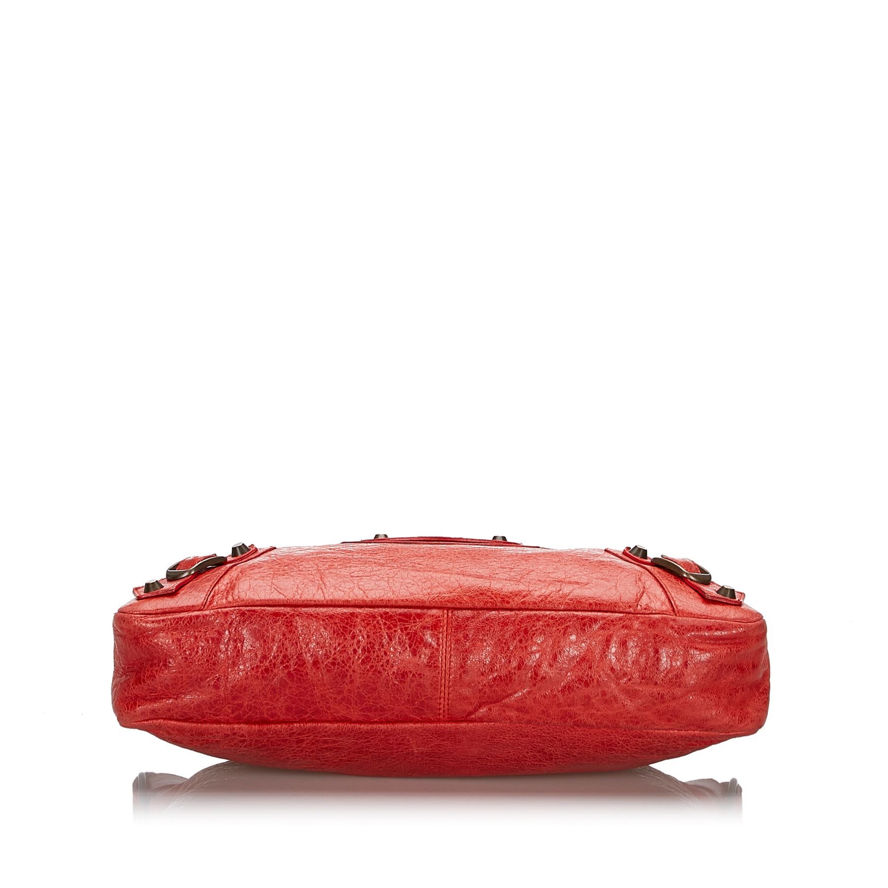 The Classic Motocross First satchel features a leather body with tassel zipper pull details, rolled handles, silver-tone studs, an exterior zip pocket, a top zip closure, and an interior zip pocket. Leather x Others Red Exterior pocket is scratched. Exterior corners is scratched. Exterior side is scratched. Screw is scratched. Size: 18 x 33 x 6 Card: NO Made in: ITALY