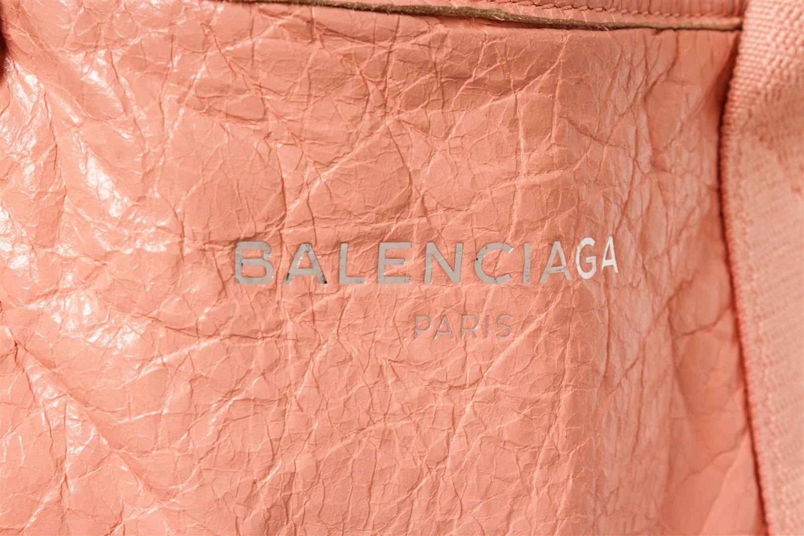 One Balenciaga Navy Cabas XS. Item is sold AS-IS. All available information is listed in the description and shown in the photo. Balenciaga Navy Cabas XS Pink Leather. Features silver hardware, black canvas interior, pink leather straps, and a silver zipper closure.