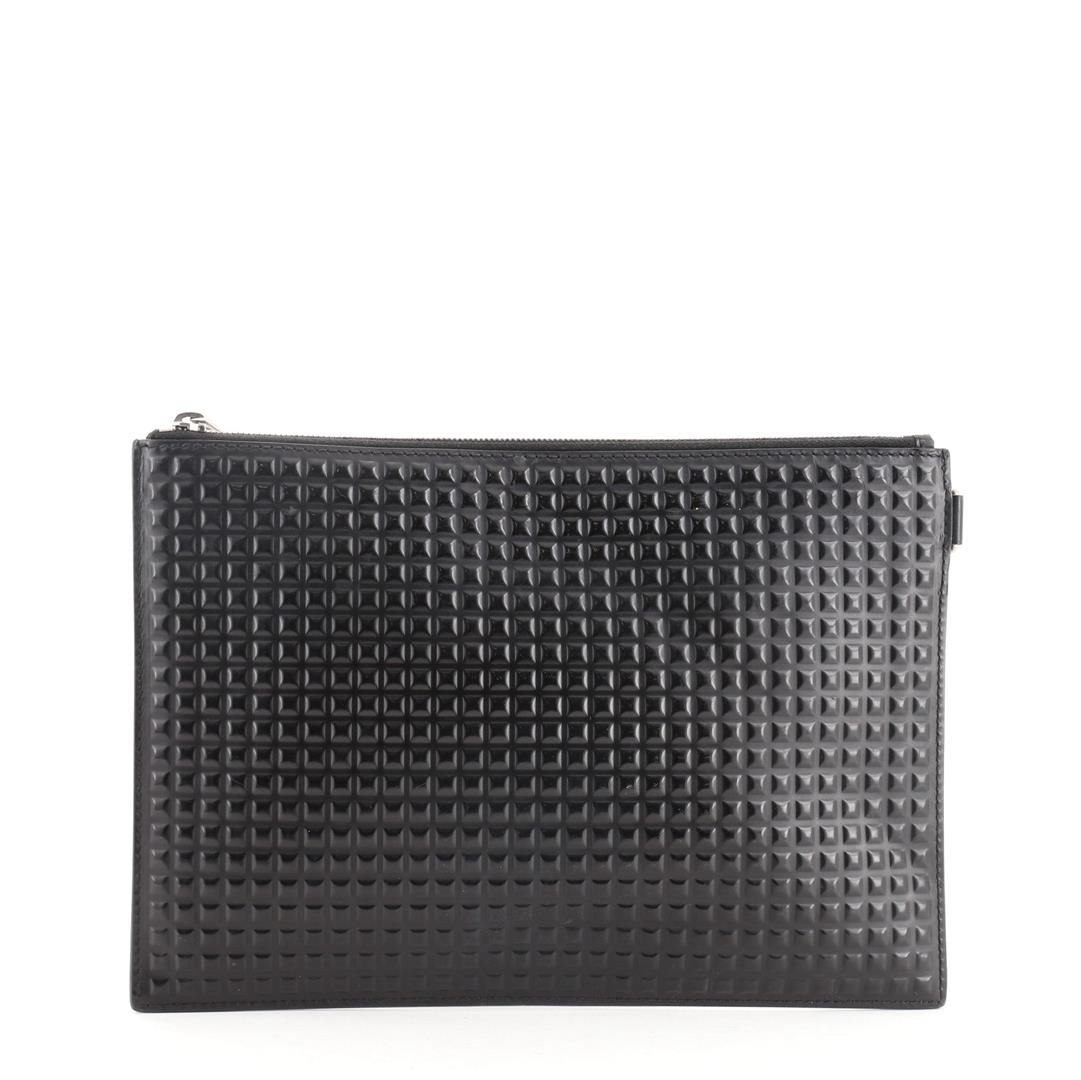 Balenciaga Zip Pouch Grid Embossed Leather Black Embossed Leather
