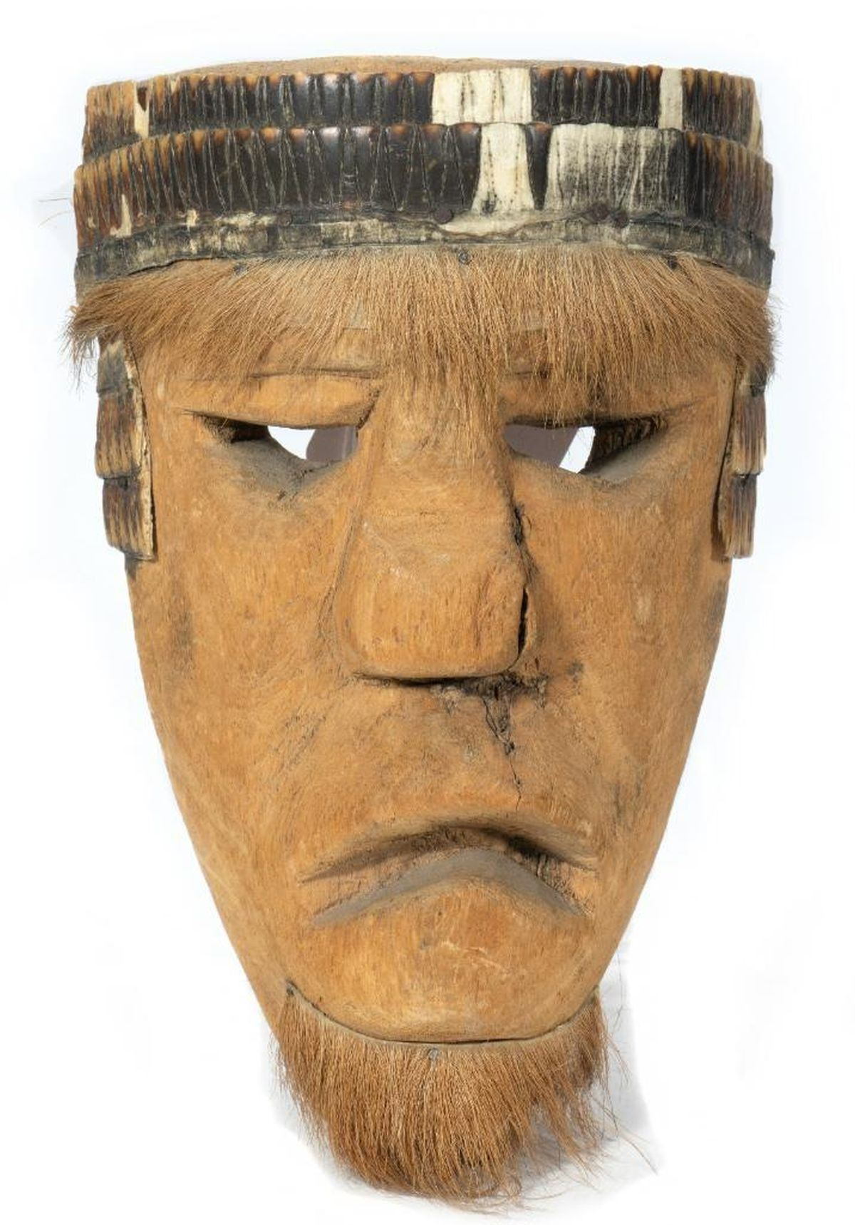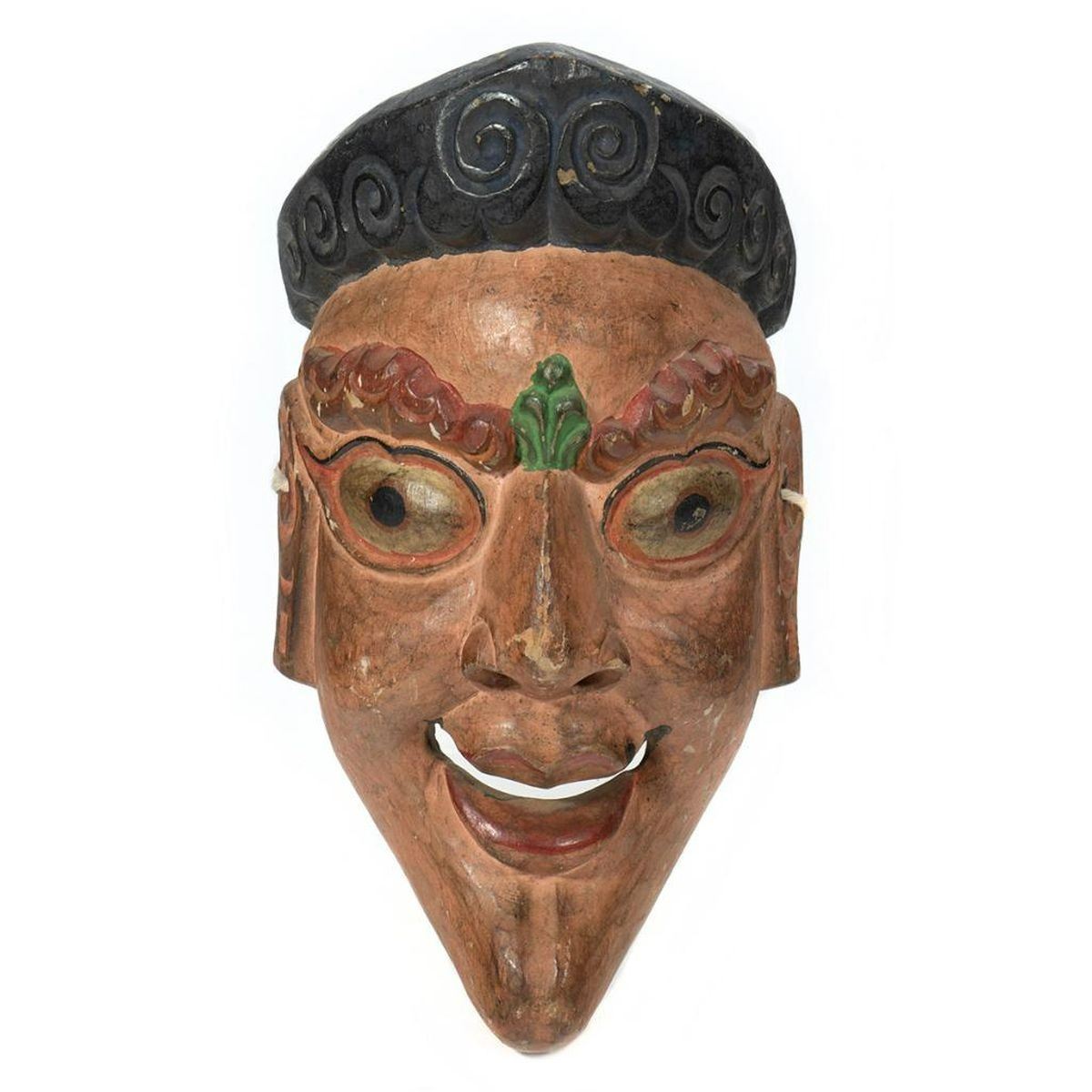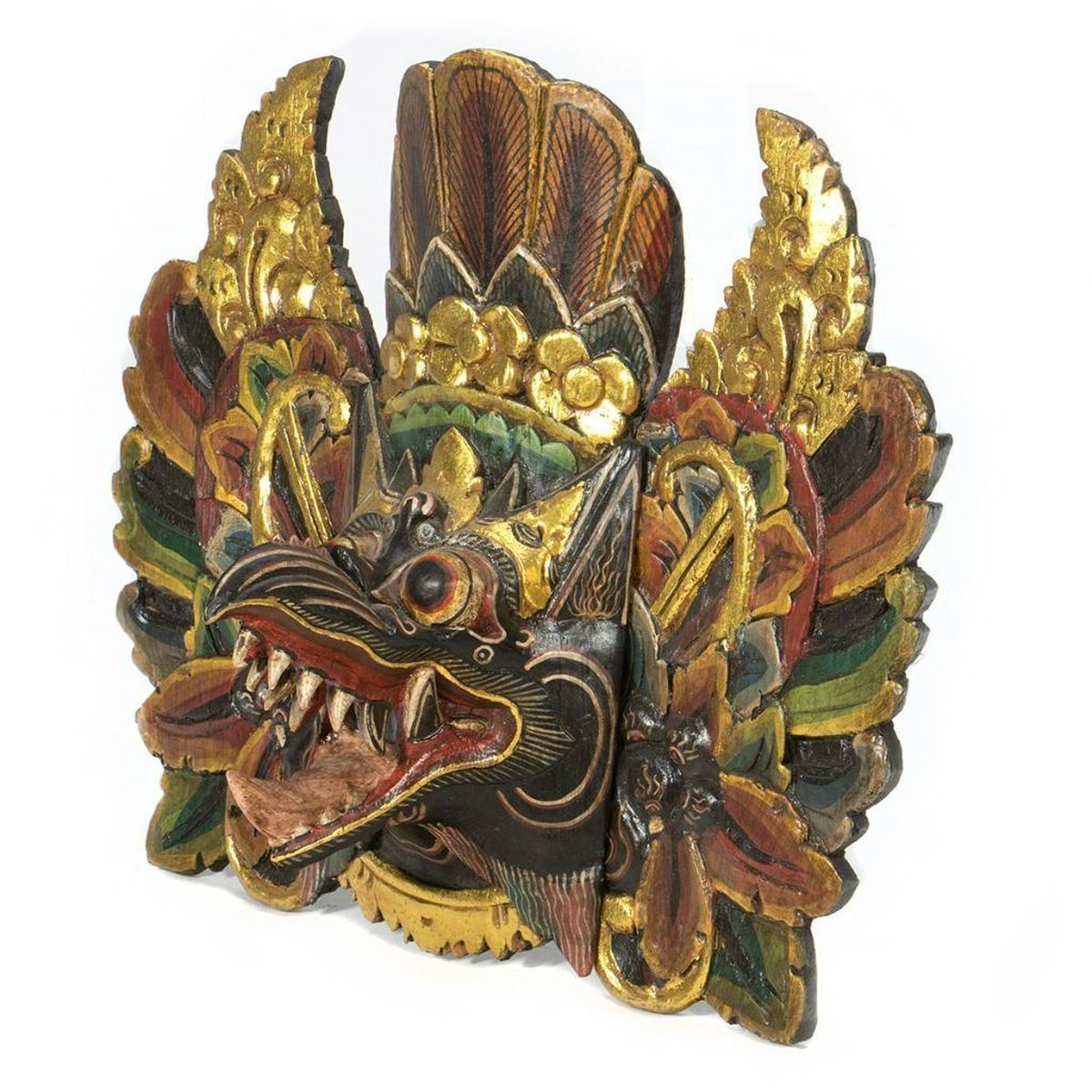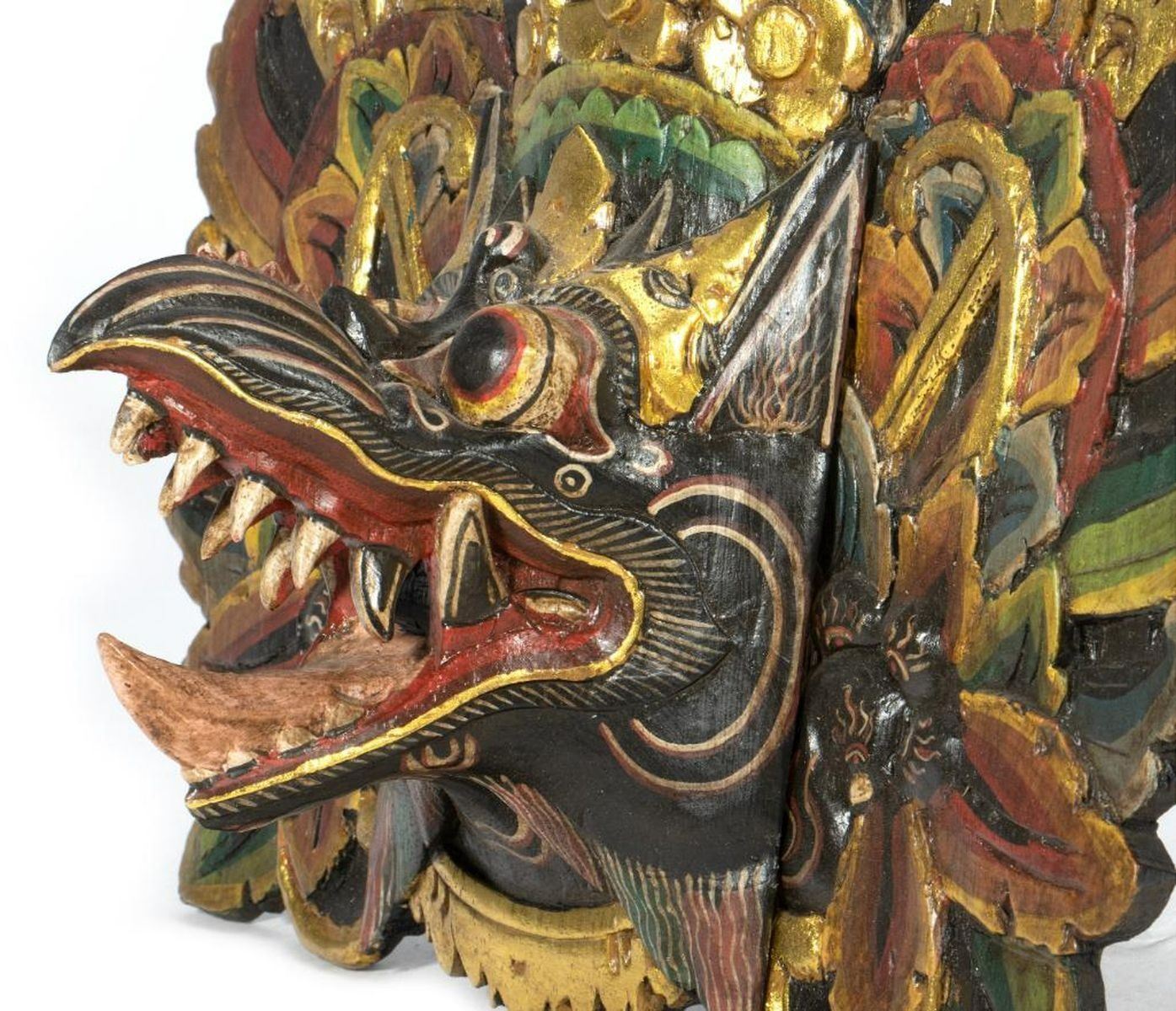 Three, polychrome and gilt depicting Tragedy, Comedy, and a Fierce Dragon. The largest 14in. h. 16in. w.; the other two 10in. h. 6in. w. Condition: All very good.