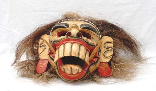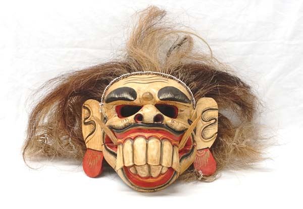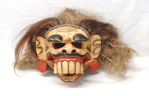 Fabulous Balinese Barong Mask with Articulated Jaw, measures 11''L x 12.5''W which does not include hair
