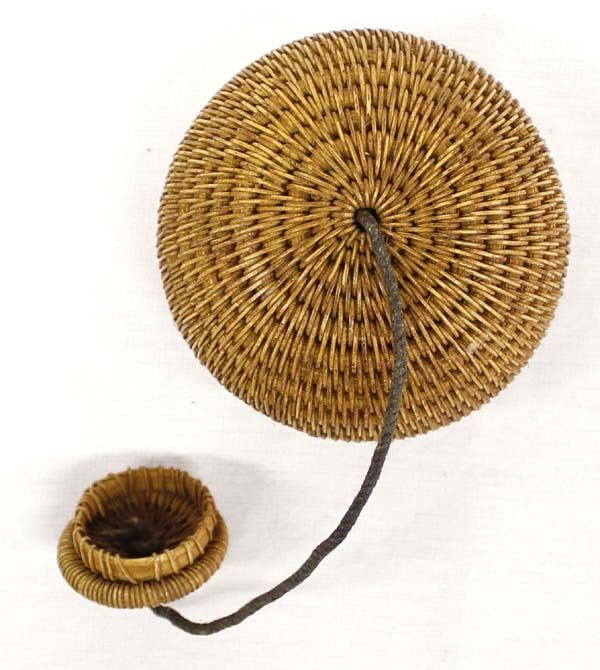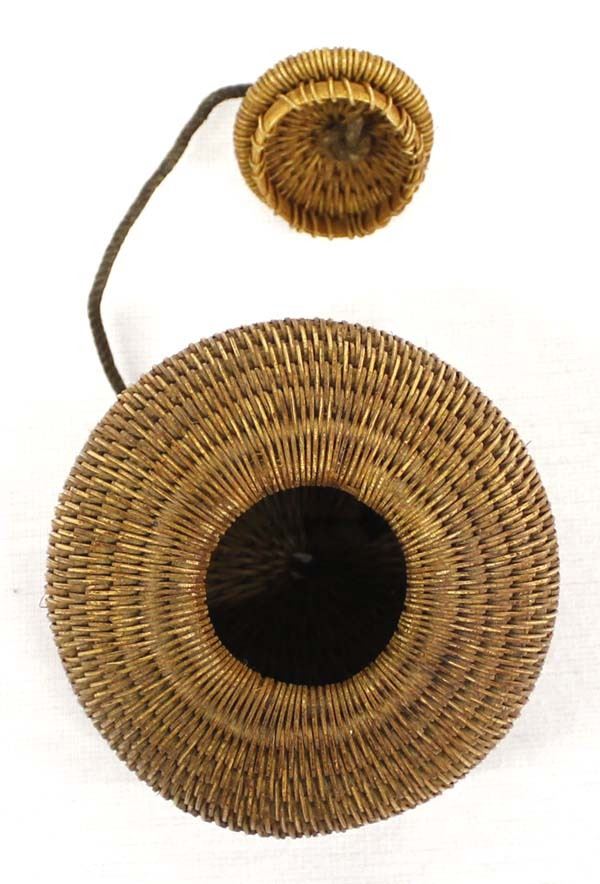 Balinese Lidded Basket, measures 3.5'' x 3.5'', nice tight weave, lid is attached with cord