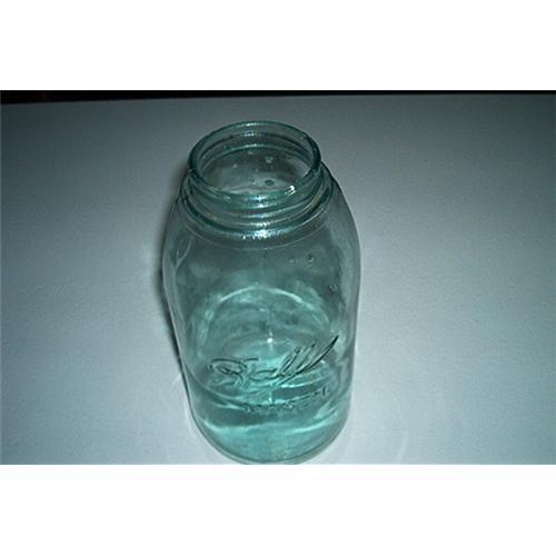 Featuring a Mold blown half gallon Ball-Mason fruit jar. High neck. Several tears and air bubbles are also seen in the glass. Greenish blue in color. Zink lid also included with the rubber seal still intack. Inverted bottom. Stands 9 inches tall.