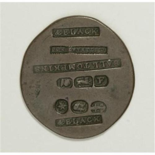 <B>Very Scarce Early Merchant Counterstamped Half Cent.</B></I> This is an outstanding counterstamped coin, an early Draped Bust half cent of unknown date with multiple counterstamps. The following are counterstamped on one side: & black, C. Stewart NY, Ball Tompkins, Goe III Lion and the letter F, a star in an oval, the head of George Washington in oval along with an anchor, and finally & black. Ball, Black & Co. are listed in Brunk circa 1851-1876. Ball, Tompkins & Black are listed in New York between the years 1839 and 1851. C. Stewart is unlisted. On the reverse the word "manufacturer" is counterstamped. This lot should see spirited bidding from the collectors of early counterstamps.<BR><BR><b>Shipping:</b> Coins & Currency (<a target="_blank" href="http://www.heritageauctions.com/common/shipping.php">view shipping information</a>)