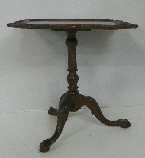With carved edge, pie crust. Approx. 30" square x 30" H. Please read our terms of sale.