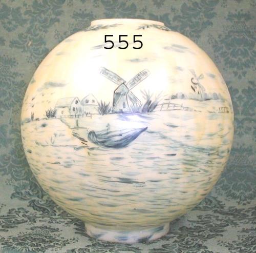 Ball shade with Dutch windmill scene – 9 ½” tall, 4” fitting – chips on base