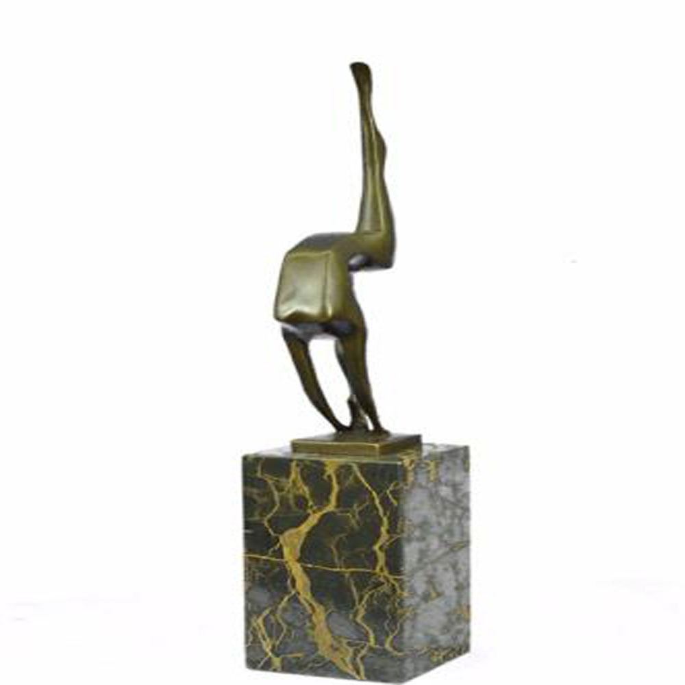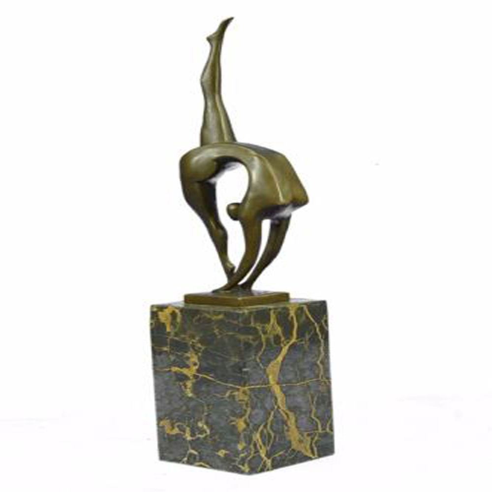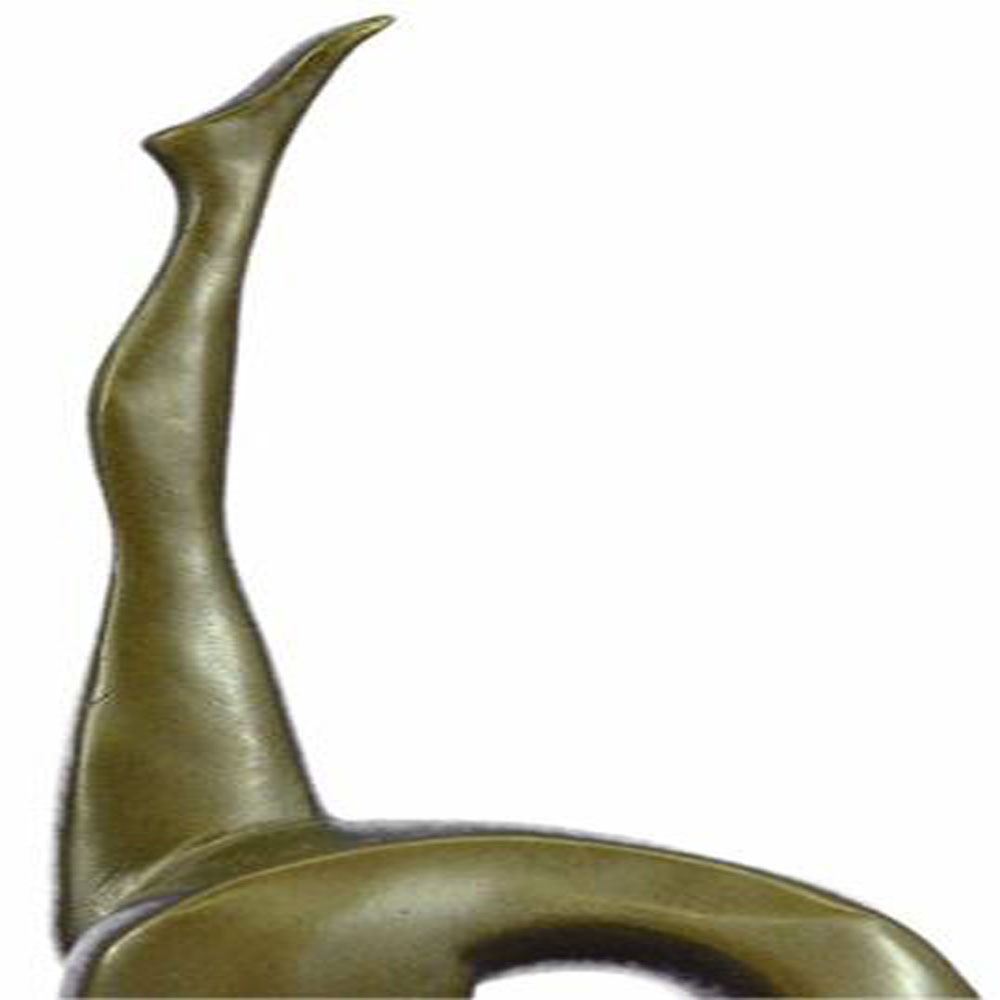 With grace, agility, and flexibility, this abstract gymnast competes for gold. Her body moves fluidly as she curves backward and touches the mat. Though her body is slender, she packs a lot of energy and strength. She balances on one leg while extending the other long lean leg to the sky. This brown patina Sculpture was cast using the Lost Wax Method and mounted on a marble base. Dimensions: Height 14 X Width 6 inches. Weight: 6 LBS.