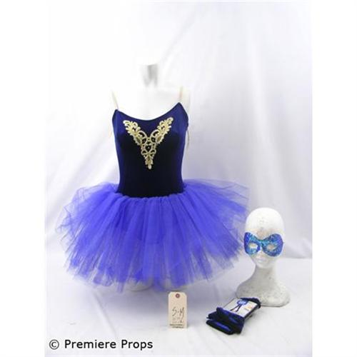From David E. Kelley Productions - Women's Ballerina Costume w/ royal velour w/ gold embroidery on chest / royal blue tutu leotard (size S-M), aqua sequin eye mask, dark blue shimmer tights (DEK1017)