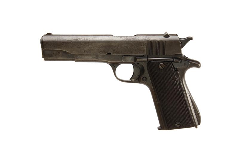 Ballester-Molina Argentine 1911 Cal .45acp SN:42019, Argentine version of Colt Army 1911semi-auto military pistol produced during the 1930s and imported by Interarms. Blued finish, wood grips with vertical grooves, 5" barrel with fixed sights, no grip saSN:42019, Argentine version of Colt Army 1911semi-auto military pistol produced during the 1930s and imported by Interarms. Blued finish, wood grips with vertical grooves, 5" barrel with fixed sights, no grip safety, good bore andaction. Condition: Good to very good with most of the blue just turning brown patina. Stampings all clear and legible including the Argentine crest. Grips show lots of use with small chips and wear but are solid. 1 magazine with SN:32926 included.