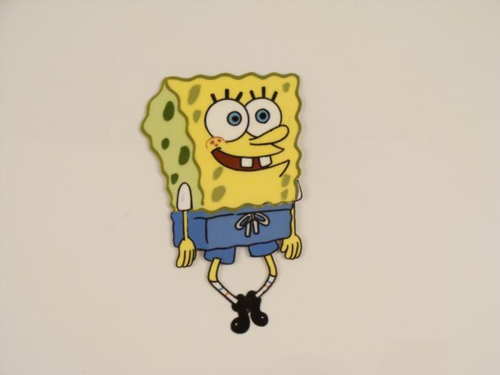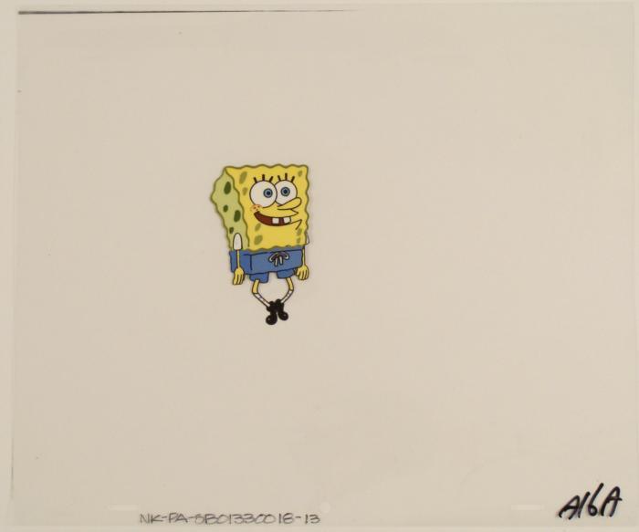 This original animation cel is from the Nickelodeon TV show SpongeBob Squarepants. The story takes place under the deep blue sea in Bikini Bottom, where SpongeBob resides. SpongeBob, who is a yellow, porous sponge, is your typical happy-go-lucky character, as he is always cheerful and enjoys making people laugh. Patrick Star, SpongeBob's neighbor who is a starfish, is your average children's show idiot, as he boasts knowing nothing and is often getting himself into ridiculous situations. Between the homes of these two lies the home of the miserable Squidward, a squid, who is known for being grouchy and playing tricks on SpongeBob and Patrick. Both SpongeBob and Squidward work at the Krusty Krab, a fast food business run by the greedy money-loving Mr. Krabs, a crab, the arch rival of the evil, possibly misunderstood, Plankton. Another neighbor, Sandy Cheeks, an athletic squirrel who normally wears an astronaut's space suit, was introduced in "Tea at the Treedome." She spends most of her time inventing and experimenting.SpongeBob looks like he is doing ballet. Original Production Animated Cel Overall Size of Cel: 10 1/2" x 12 1/2" Very Good ConditionThis is an original hand-painted cel set-up used in the production of an episode of "SpongeBob SquarePants." Each one-of-a-kind set-up represents a slight change in position of the characters. When individually photographed and projected in rapid succession, the images appear to move.